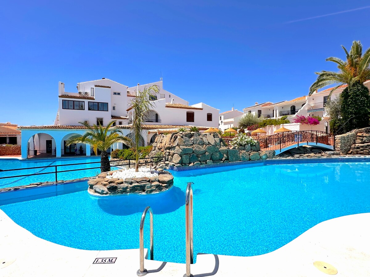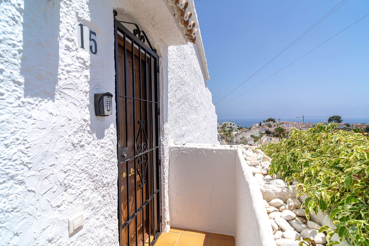 A stunning newly furnished, spacious 2 bedroom house within the complex of Capistrano Pueblo, with spectacular south facing sea views from a large sized 30 sq mt terrace. The house is located close to the entrance of the urbanisation and as a result close to one of the largest supermarkets in Nerja (Mercadona) and the communal swimming pool.