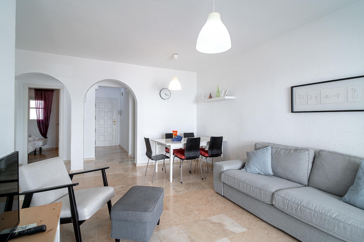 Wonderful apartment in Nerja with two bedrooms and two bathrooms for four people in the Urbanisation Las Fuentes with an unbeatable location, sea views and community pool.A few meters from Torrecilla Beach and the Balcón de Europa.