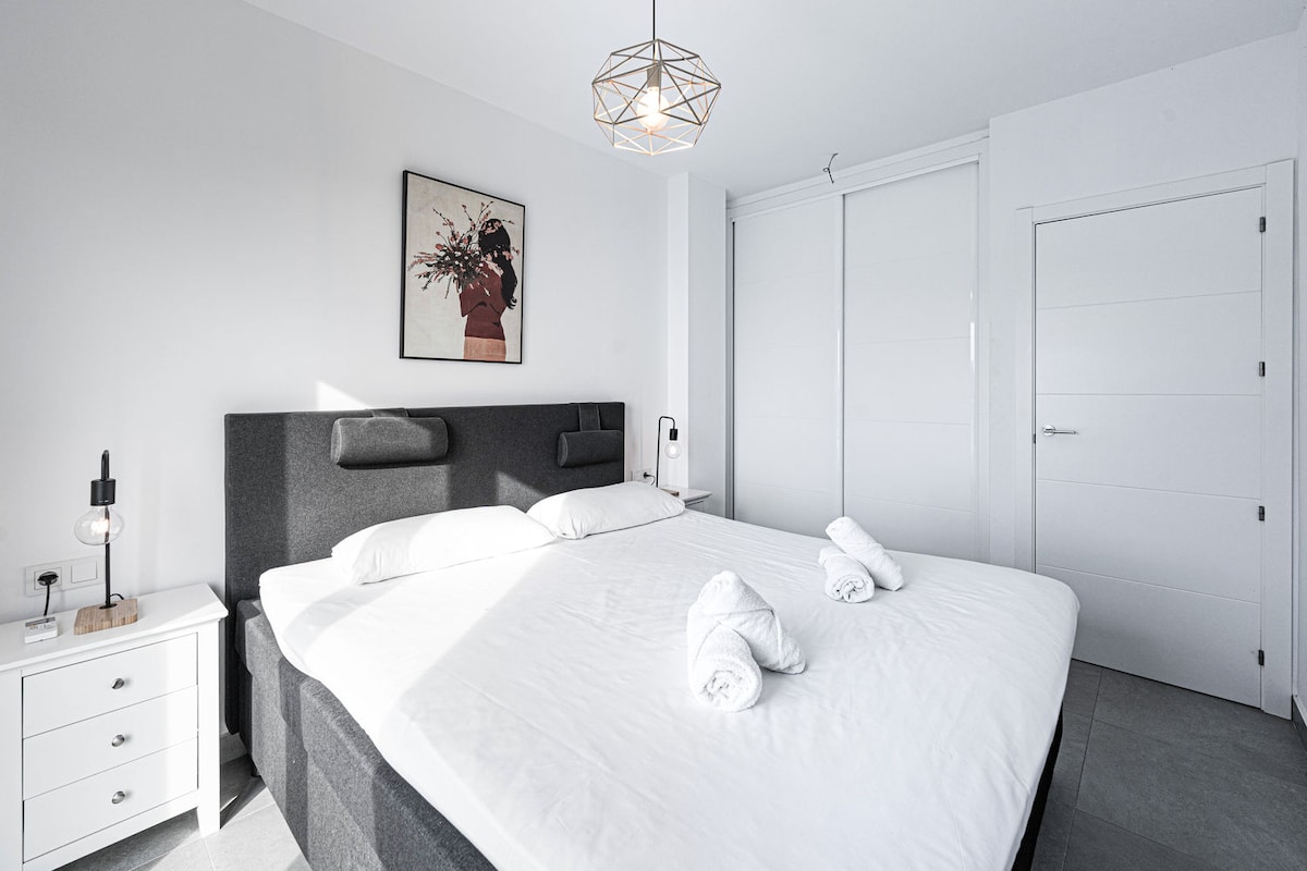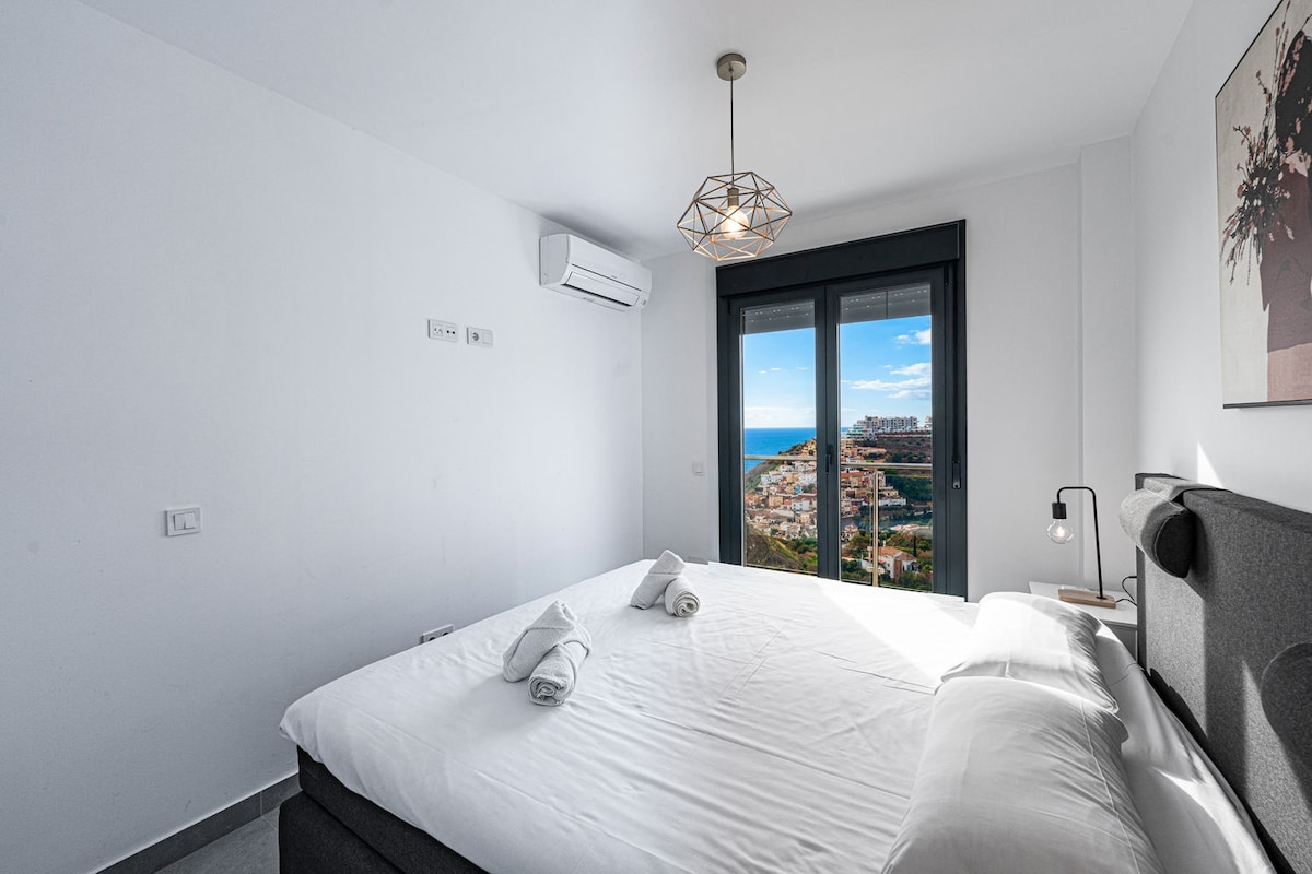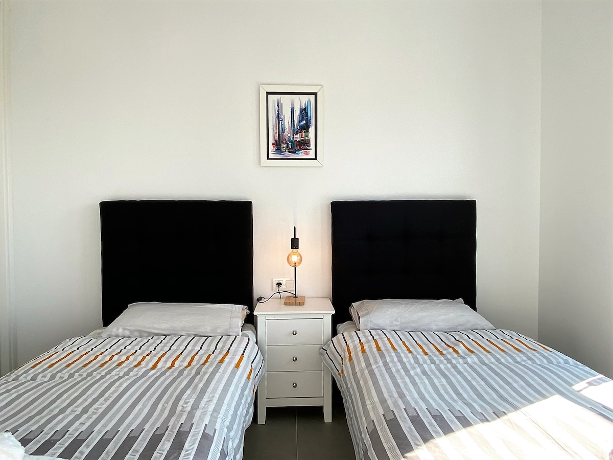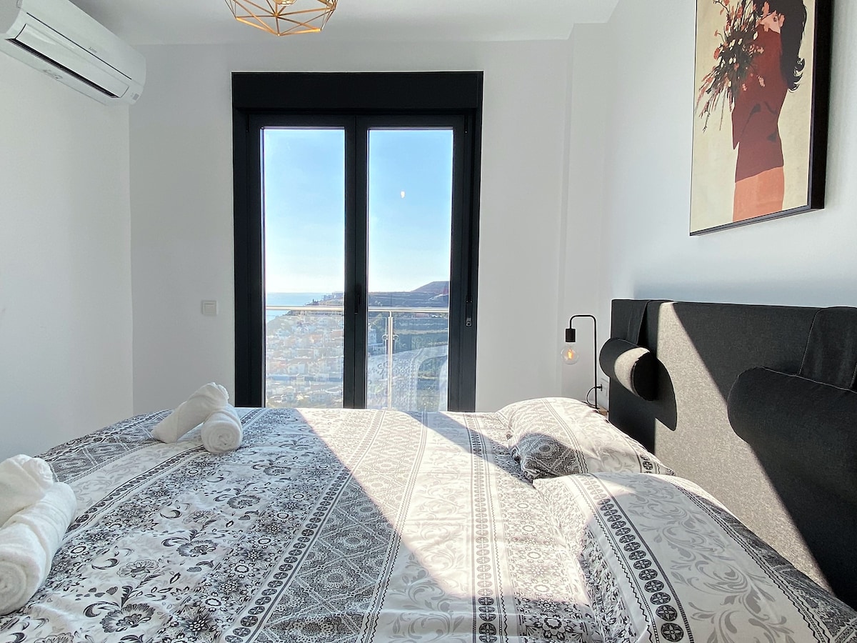 Super modern apartment with fantastic views and a lovely private terrace, clean and easy to keep clean. The gym is also a very nice touch. Only issues were when it was windy, you could not enjoy outside and also this meant the pool was cold and windy and leaves and dirt blew into the pool, it also wasn’t cleaned for several days. Note for other guests, the main bins are a 5 minute drive and you are quite far away from the good beaches, Overall very nice stay.