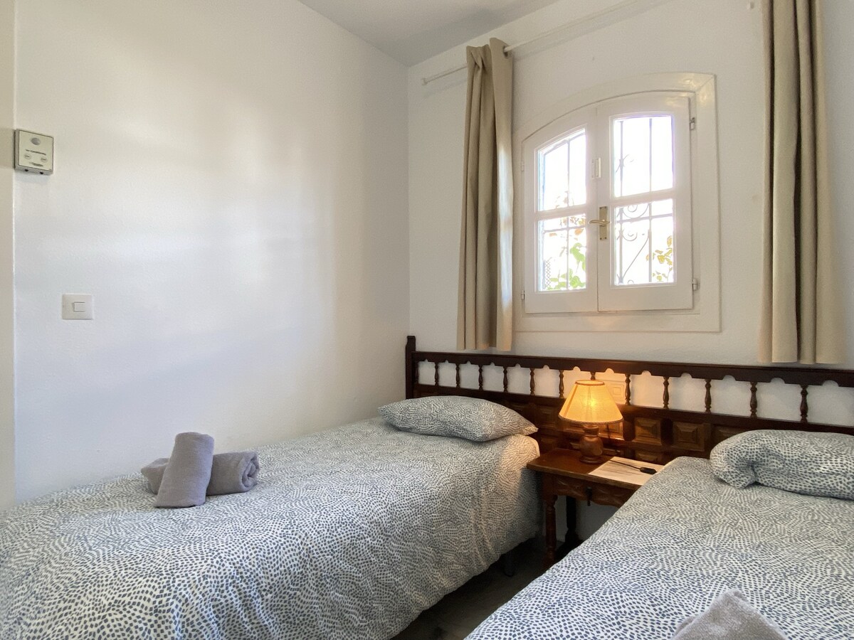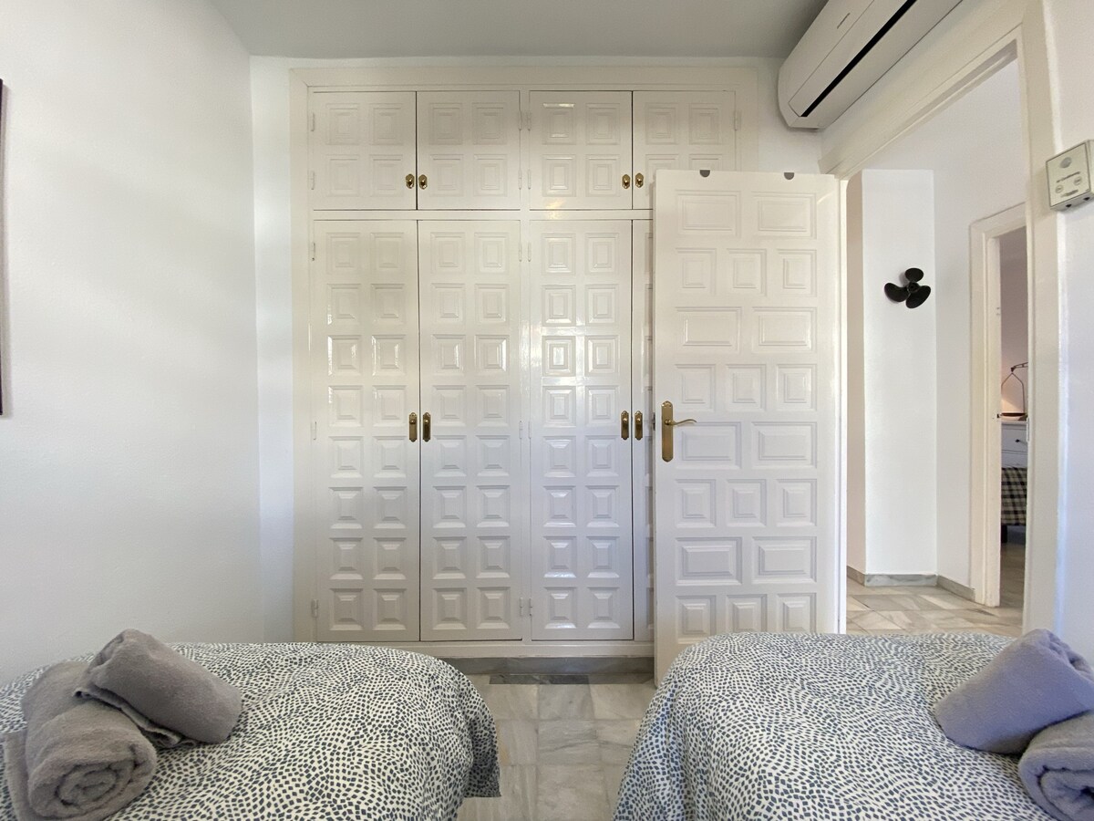 This really charming apartment on the ground floor with two bedrooms, with a private courtyard terrace facing west with afternoon sun and a fantastic communal pool and garden right outside the door, is located in the well-known centrally located urbanization of Verano Azul. Not only does the apartment have a great location, with both Nerja town center and a selection of beautiful beaches no more than a 10-minute walk away, but it also offers access to two fantastic communal pools and beautifully green gardens. New and comfortable furnishings and the property is well equipped.It's no more than a ten-minute walk to Burriana Beach, Nerja's largest and most popular beach, and is in a great location within easy walking distance of all shops, restaurants, bars and cafes.
