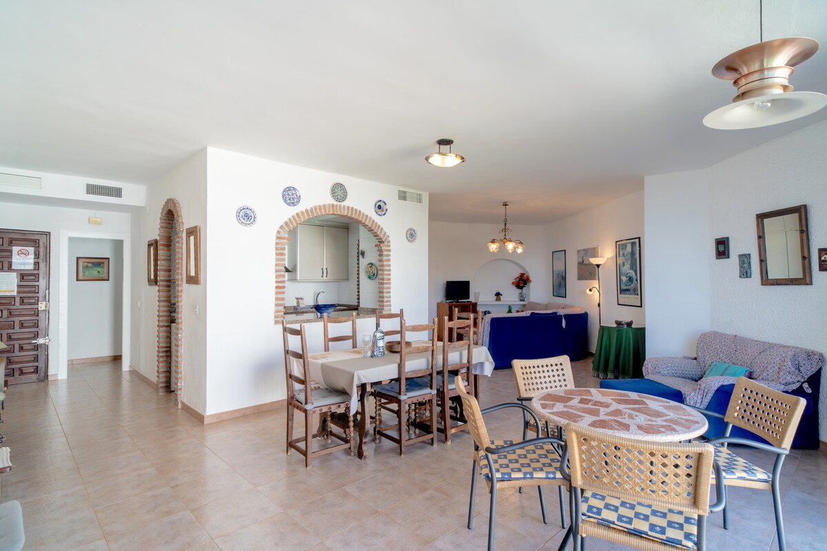 The interior design is chic and stylish, providing a relaxing ambiance for your stay. The living room is furnished with comfortable seating, and the apartment comes with international Tv and high-speed internet to keep you entertained. The central air conditioning will help you stay cool during the warm summer days in Nerja.