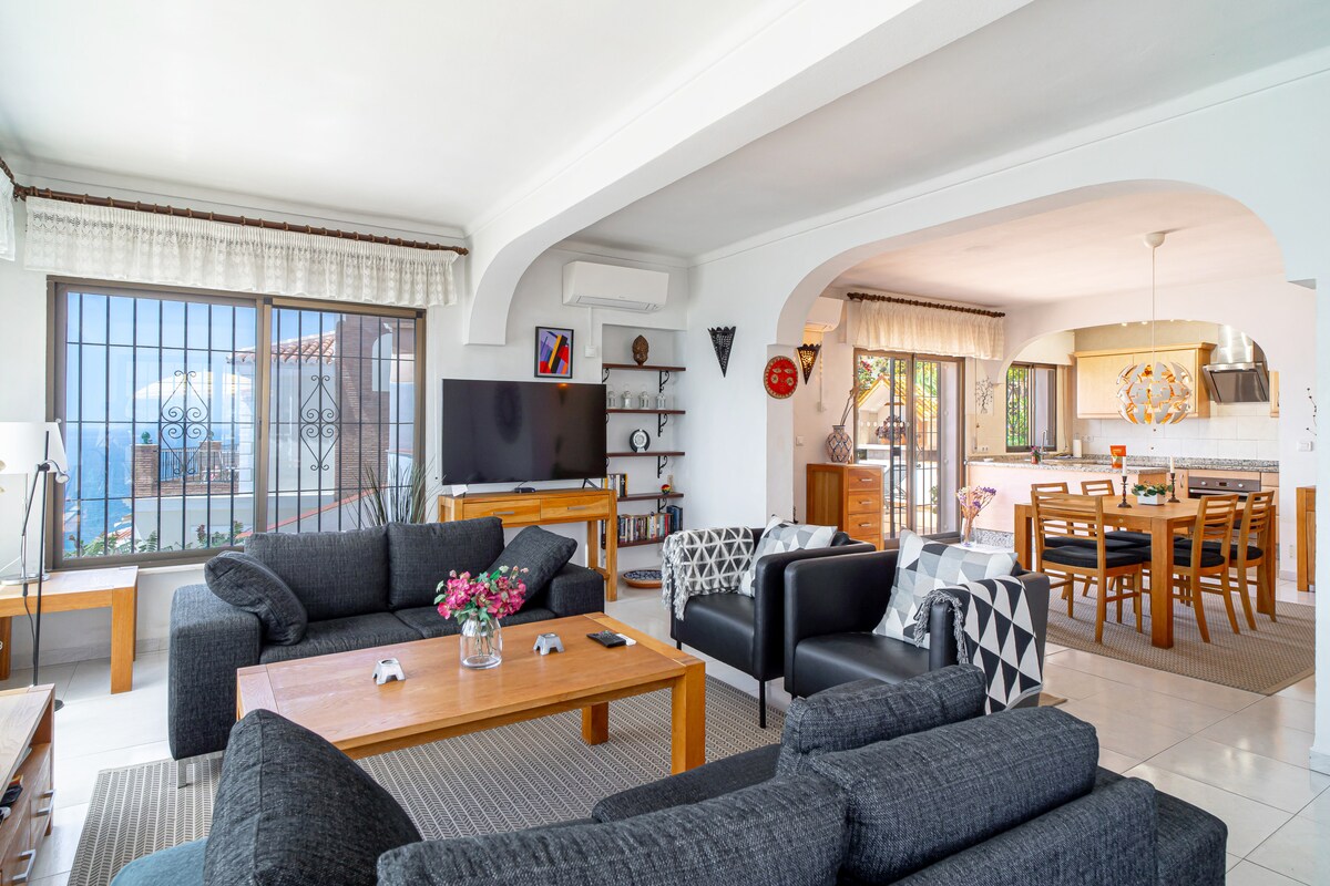 The villa has a large terrace equipped with a barbecue, ideal for enjoying alfresco meals while taking in the panoramic views. In addition, its most distinctive feature is a gazebo with a bench specially designed to enjoy these breathtaking views, inspiring the name of the house.