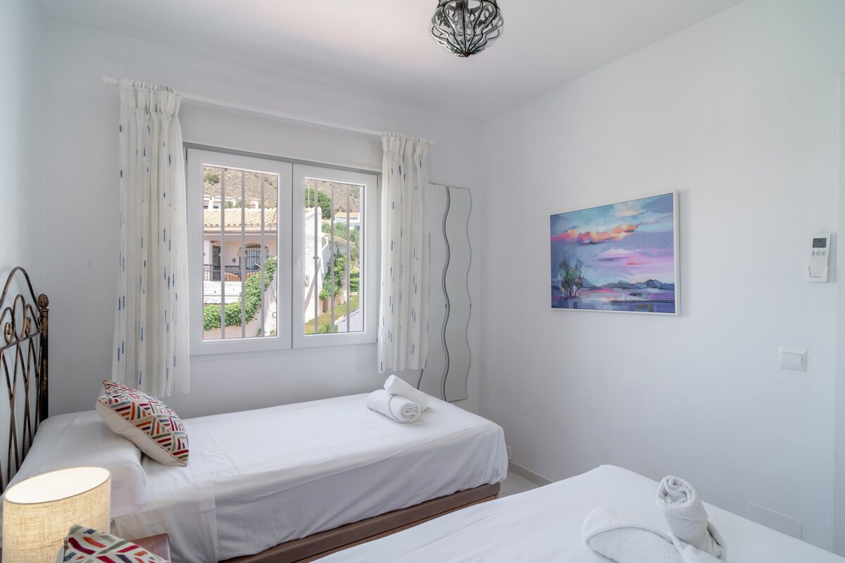 Los Aguacates Bellavista Casasol is a lovely sunny holiday home with 2 bedrooms and two terraces in the Urbanisation Aguacates Bellavista in Nerja with beautiful views of the Mediterranean Sea, which can be seen from both the living room and the master bedroom, thus offering you the opportunity to wake up with the beautiful view of the sea every morning.Located in the famous Capistrano area, at a distance of 2 kilometres from the beach, this place offers a privileged location for those who wish to enjoy the Mediterranean Sea and seek tranquillity.