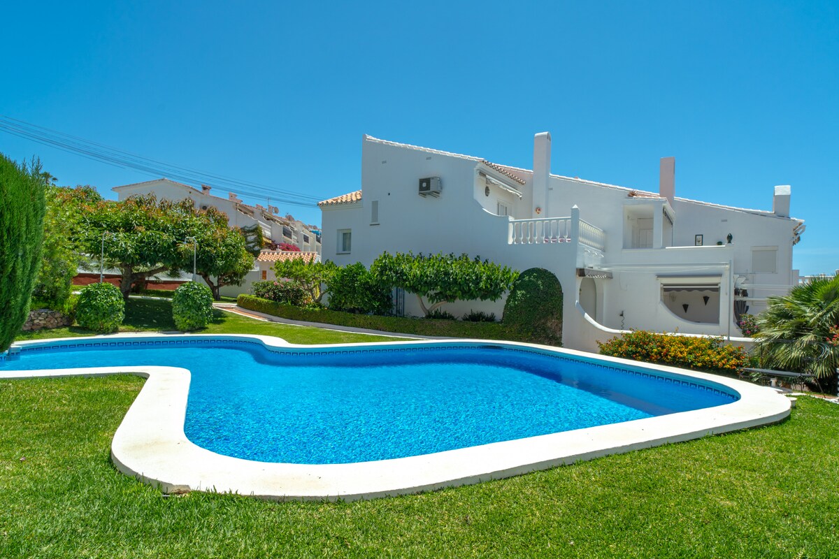 The Urbanisation is a meticulously manicured botanical paradise, filled with flowers, plants and avocado trees. The swimming pool is surrounded by the houses and green areas. Even during the high season, parking is easy to find.
