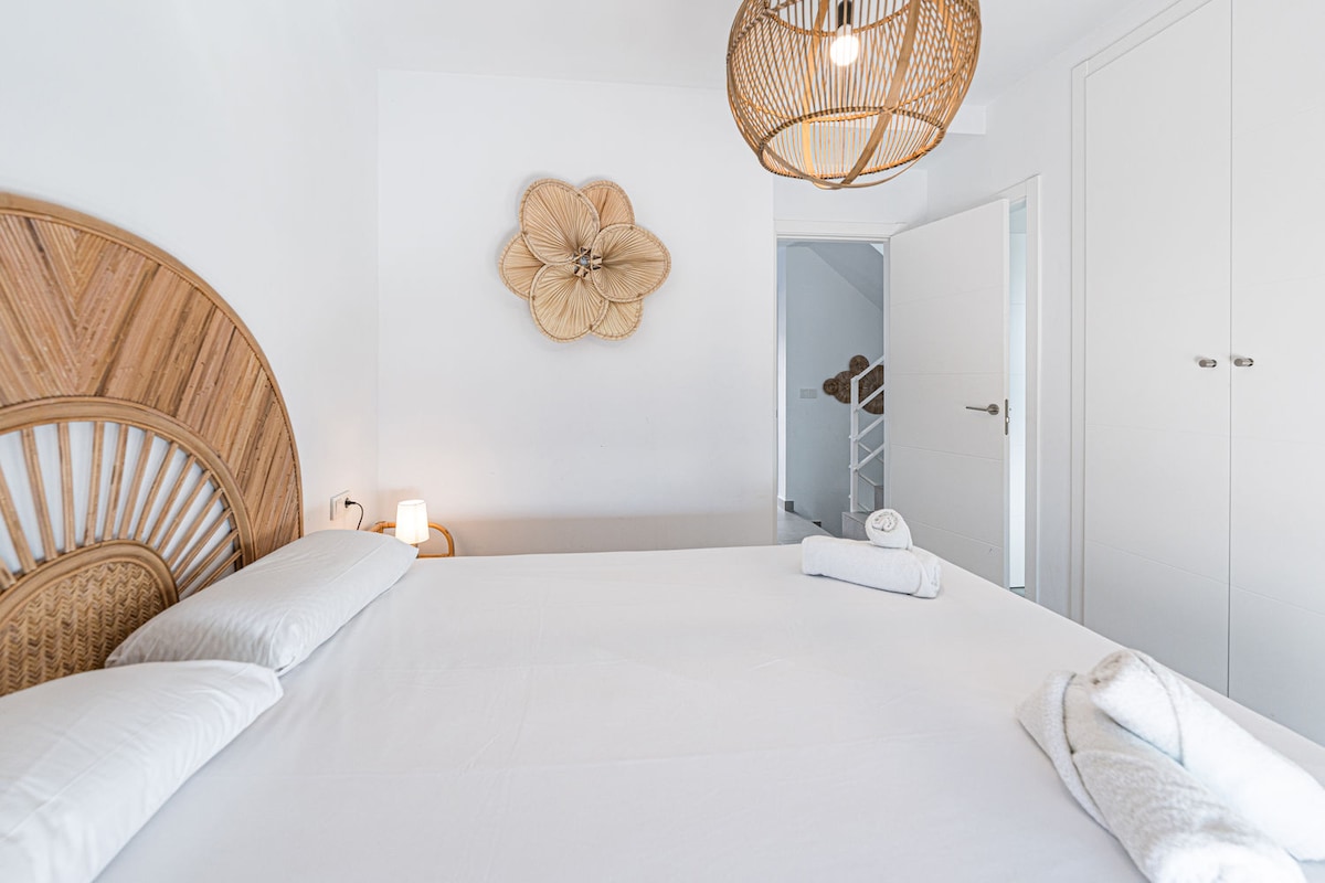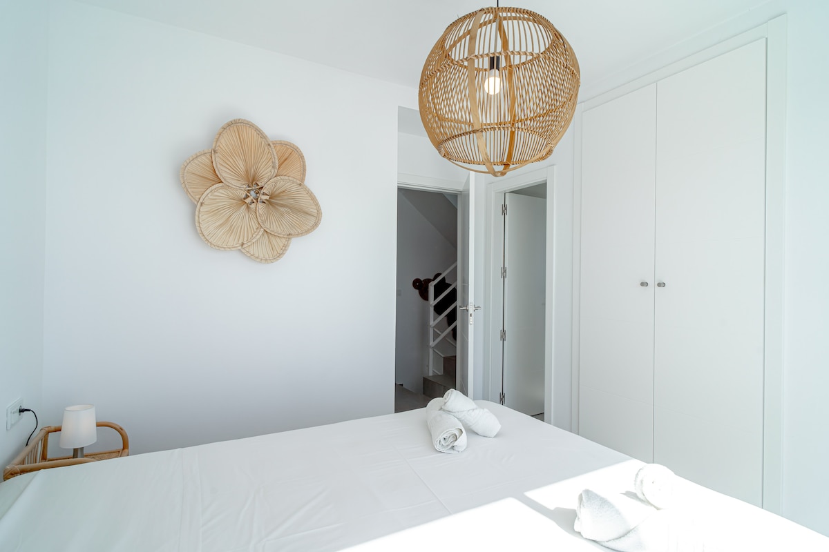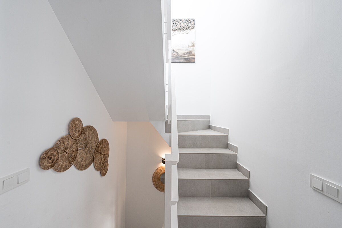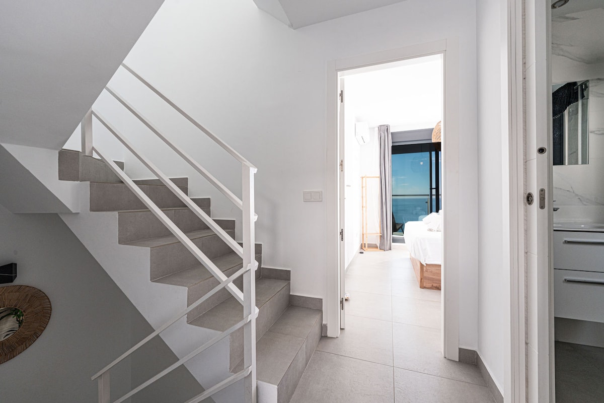 This luxury Duplex is designed to accommodate up to 4 people comfortably. With a smart layout and air conditioning, it offers three bedrooms to suit the needs of all guests: a master bedroom with a spacious king size bed and an en-suite bathroom, complete with a private balcony to enjoy the views of the surroundings. You will also find an additional bedroom with a comfortable single bed and a separate bathroom for added comfort.The entrance level offers not only the comfort of the bedrooms, but also direct access to the roof terrace, where you can relax outdoors and enjoy quiet moments in the warm sunshine, gaze at the stars at night or enjoy a barbecue.