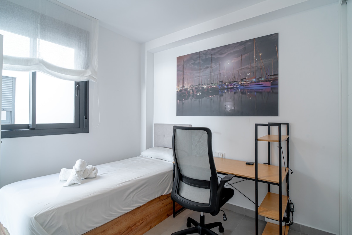 From the ground floor you will be greeted by a bright living room that opens onto the spacious terrace with panoramic views that will take your breath away. Also on this floor, you will find a bedroom with a comfortable single bed and a practical desk, ideal for those moments when you need a quiet space to work or relax.