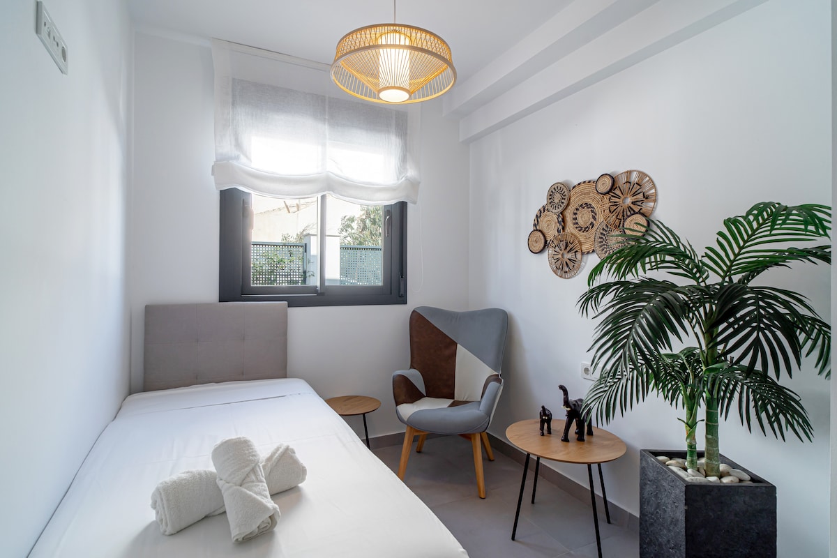 This luxury Duplex is designed to accommodate up to 4 people comfortably. With a smart layout and air conditioning, it offers three bedrooms to suit the needs of all guests: a master bedroom with a spacious king size bed and an en-suite bathroom, complete with a private balcony to enjoy the views of the surroundings. You will also find an additional bedroom with a comfortable single bed and a separate bathroom for added comfort.