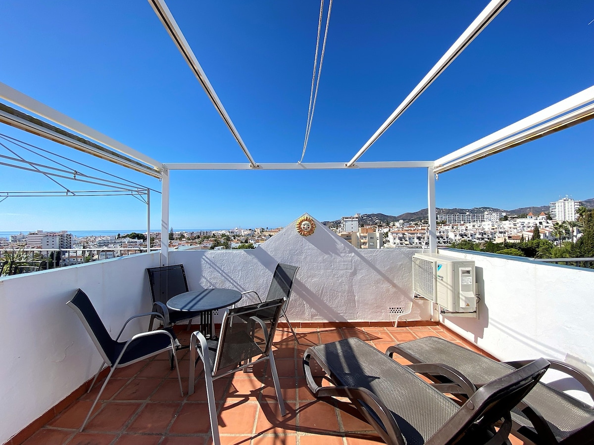 Fresh 2 bed-townhouse of about 80 sq. m with roof terrace and wonderful views over the pool area, the sea, the beautiful city and the mountains.Casa Ekman Casasol is one of 27 houses in the pleasant urbanization Fuentesol in Nerja. Some people live here most of the year and some houses are rented out too.