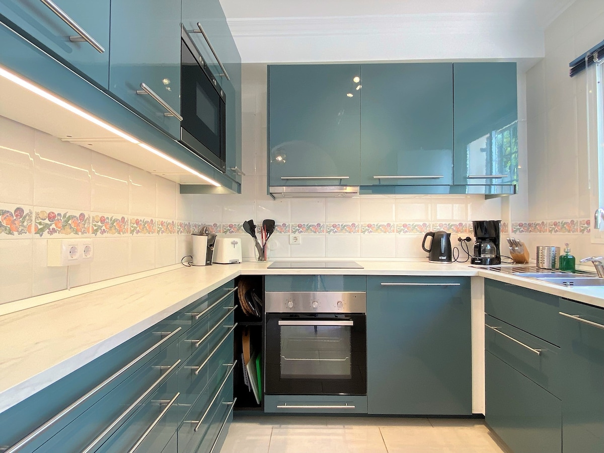 The fully equipped brand-new kitchen has everything you might need to make the most of your vacation, such as induction hob, oven, microwave and dishwasher.