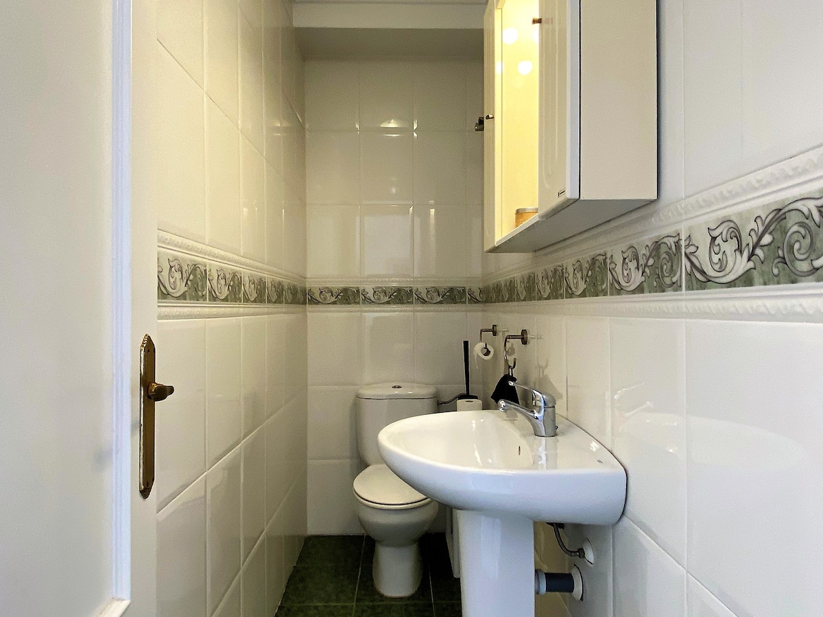 Also, a guest bathroom (toilet and sink) and a sunny terrace (9 sq. m), with terrace furniture and awning, facing southwest and spectacular views of the pool, the sea, the city and the mountains.