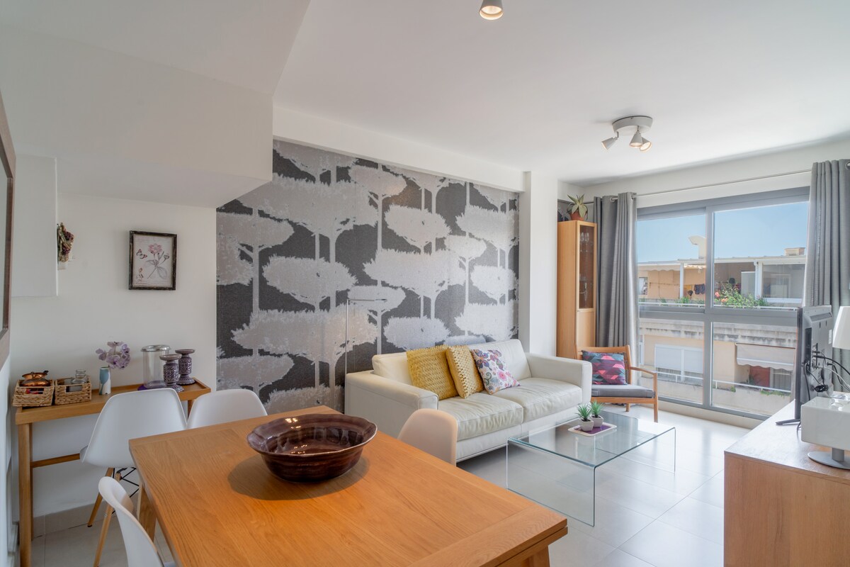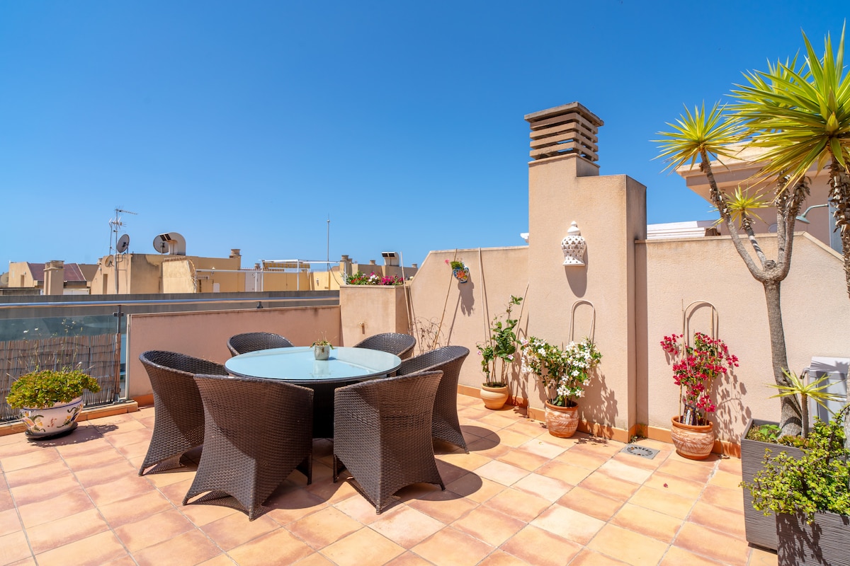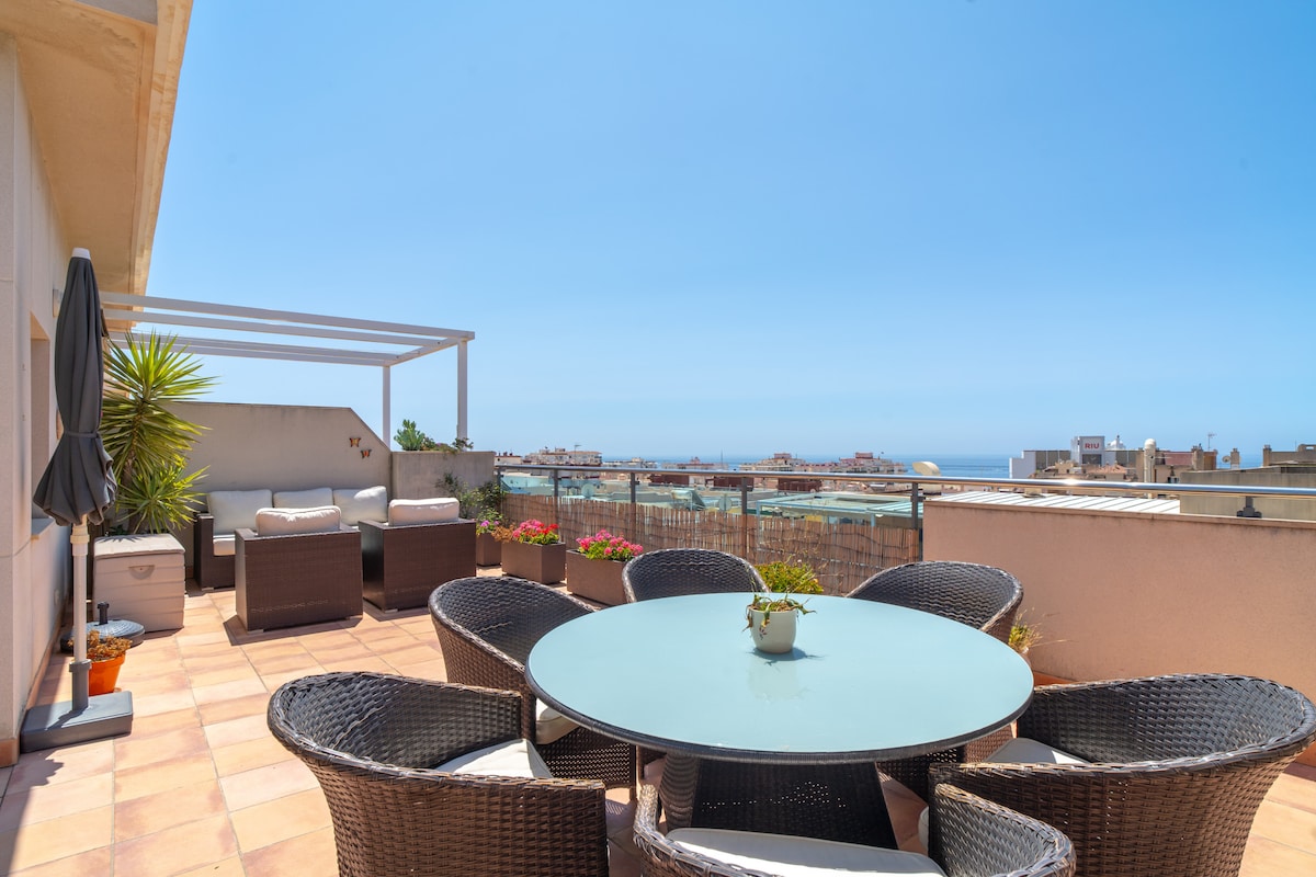 An outstanding feature of the Penthouse Mirador 5b is its spacious 50m2 private terrace, which has a south-facing orientation to enjoy the sun for a large part of the day. On this terrace, guests can relax on sun loungers, enjoy a delicious meal or simply have a drink in a Chill Out atmosphere. This outdoor area offers additional space to enjoy the Mediterranean climate and panoramic views.