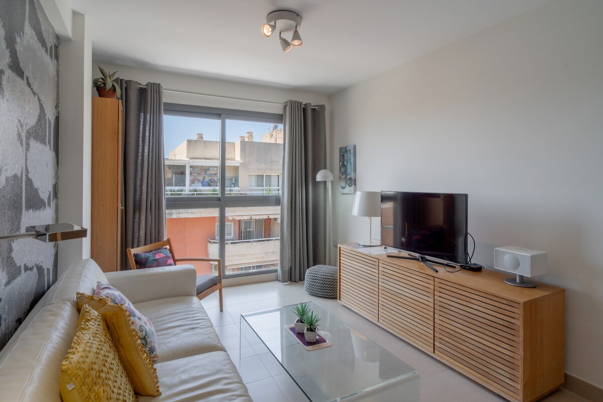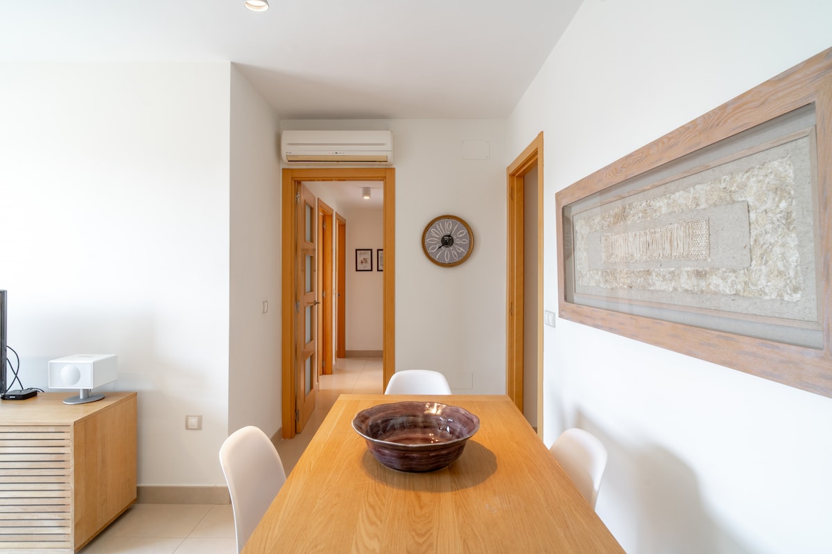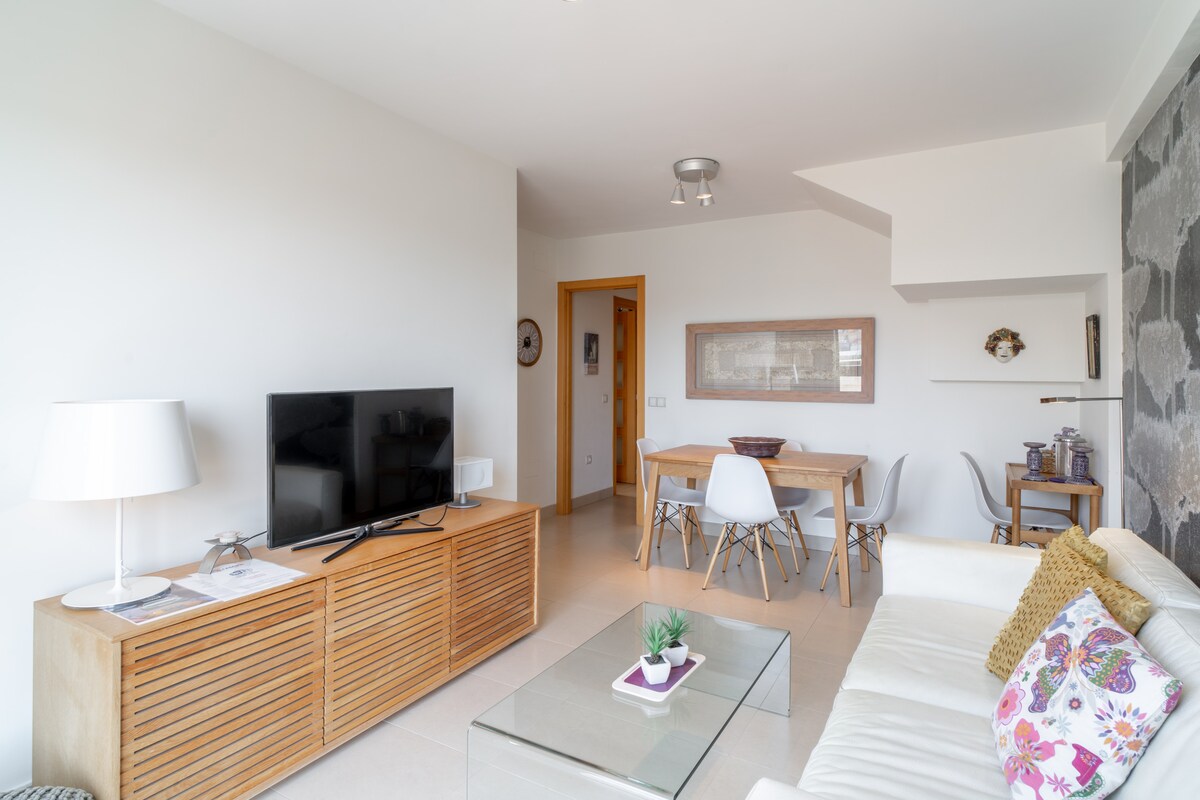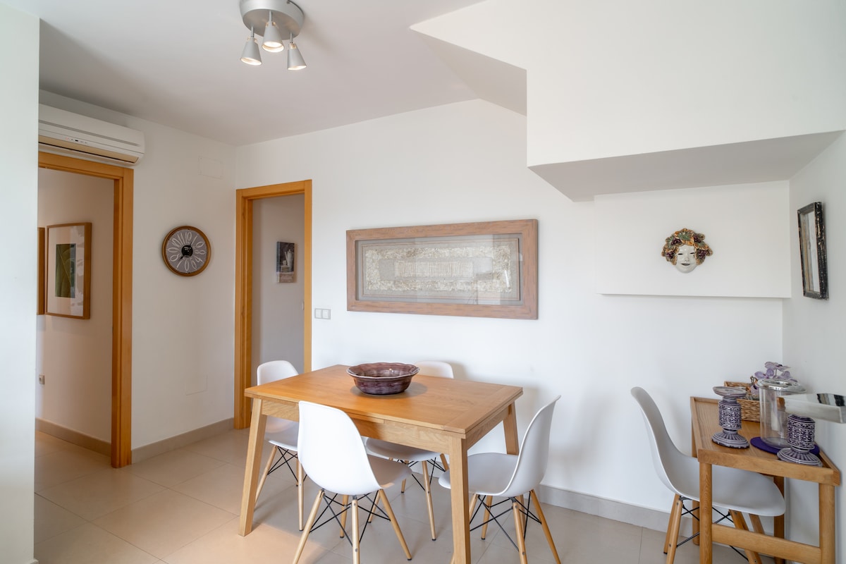 An outstanding feature of the Penthouse Mirador 5b is its spacious 50m2 private terrace, which has a south-facing orientation to enjoy the sun for a large part of the day. On this terrace, guests can relax on sun loungers, enjoy a delicious meal or simply have a drink in a Chill Out atmosphere. This outdoor area offers additional space to enjoy the Mediterranean climate and panoramic views.