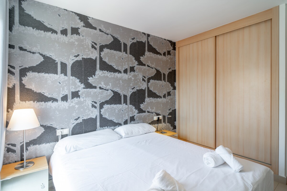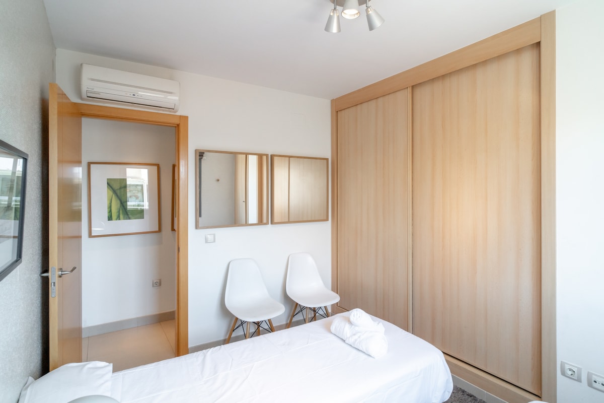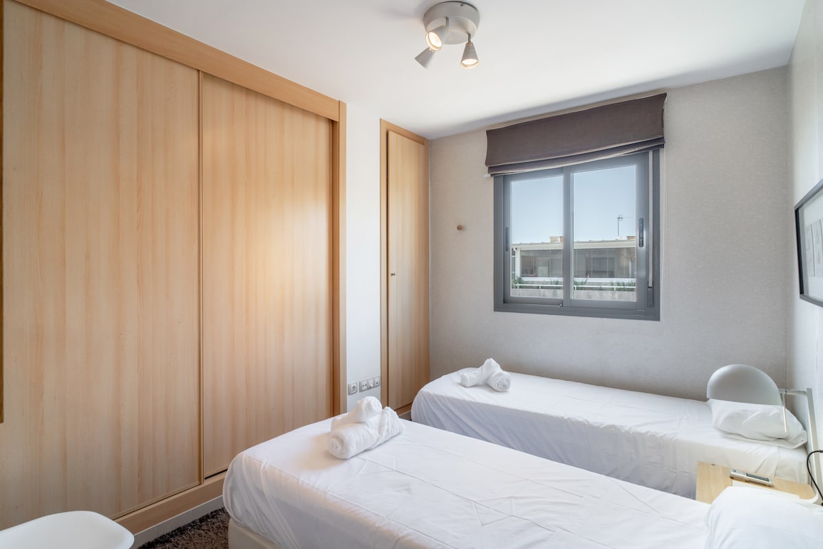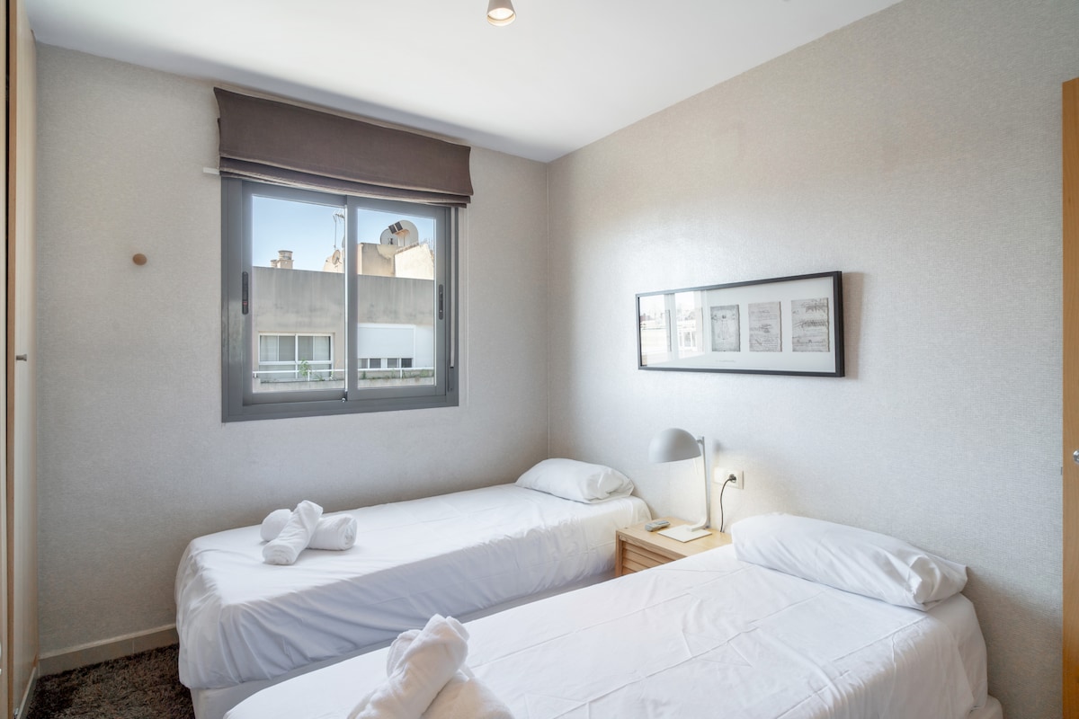 As for the layout of the rooms, the flat has two bedrooms. One of them has a double bed, while the other has two single beds, making it ideal for families, groups of friends or couples looking for comfort and privacy.