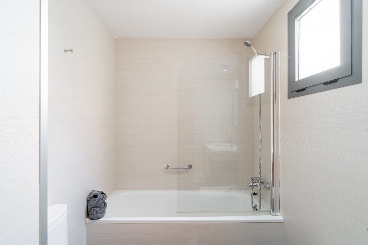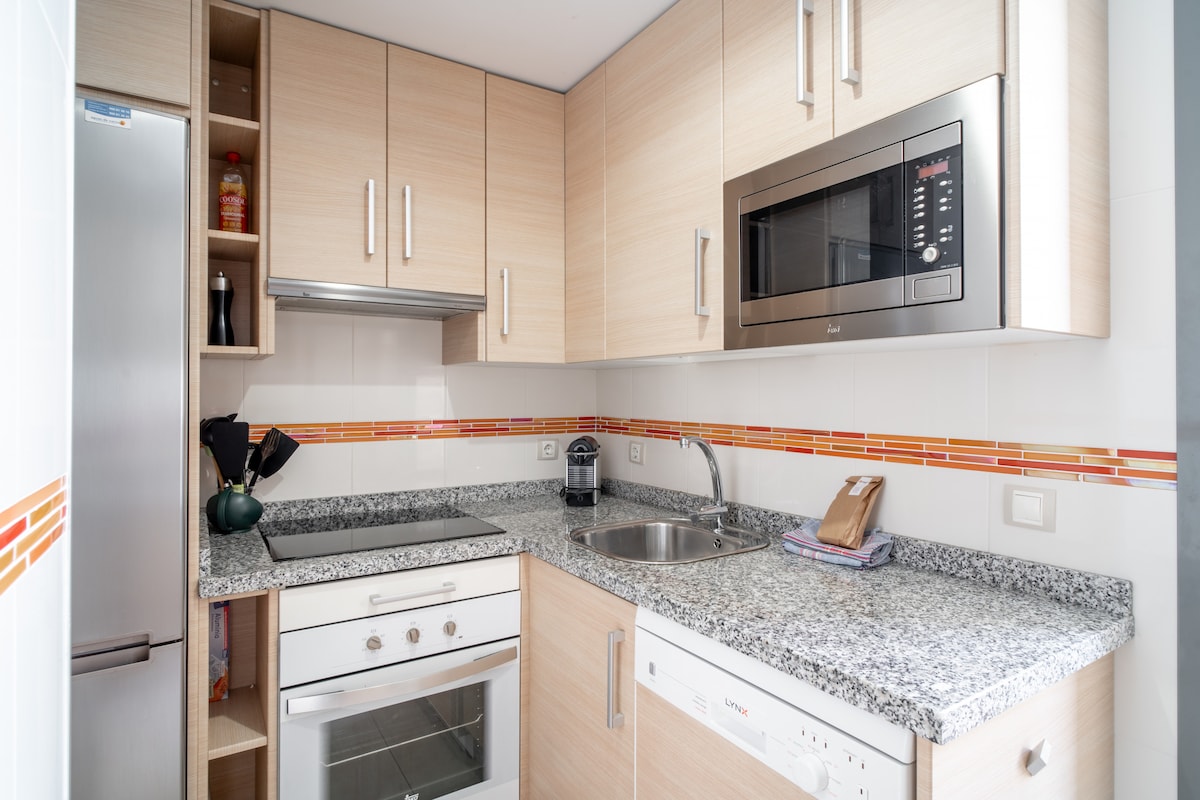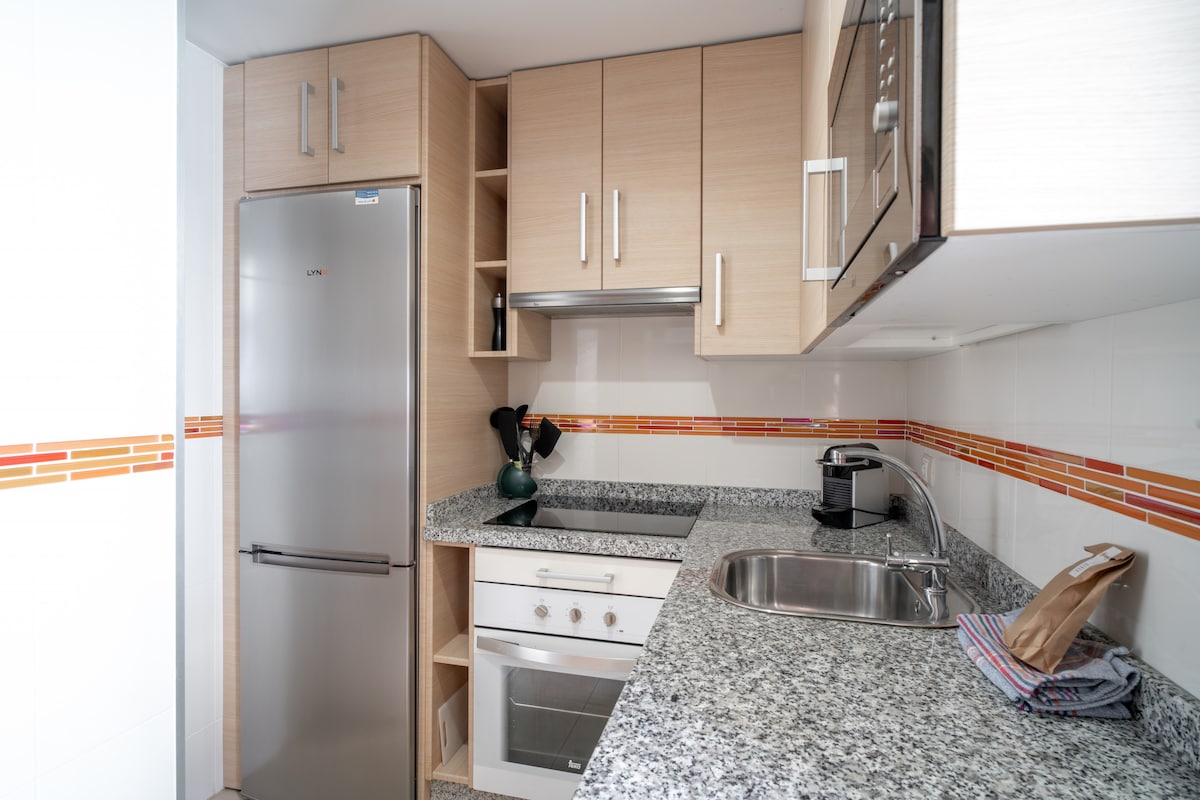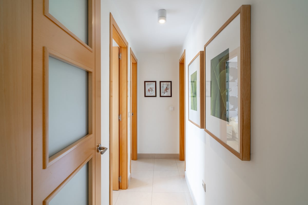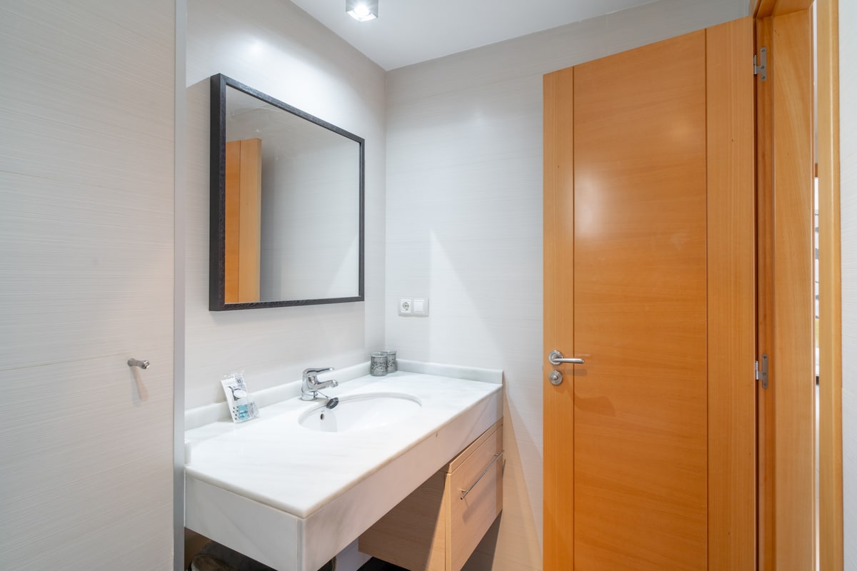 As for the layout of the rooms, the flat has two bedrooms. One of them has a double bed, while the other has two single beds, making it ideal for families, groups of friends or couples looking for comfort and privacy.