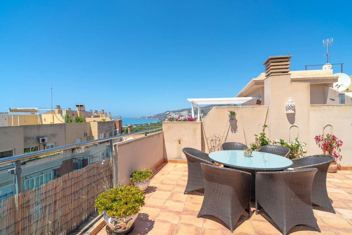Penthouse Mirador 5b is a modern and stylish holiday flat located in an excellent area close to the beaches of La Torrecilla and Playa Chucho in Nerja. It is west of the Balcon de Europa, just a few minutes away. The location of the flat is perfect, with a variety of bars, supermarkets, shops and restaurants in the surrounding area, allowing you to enjoy all the amenities and dining options the area has to offer.