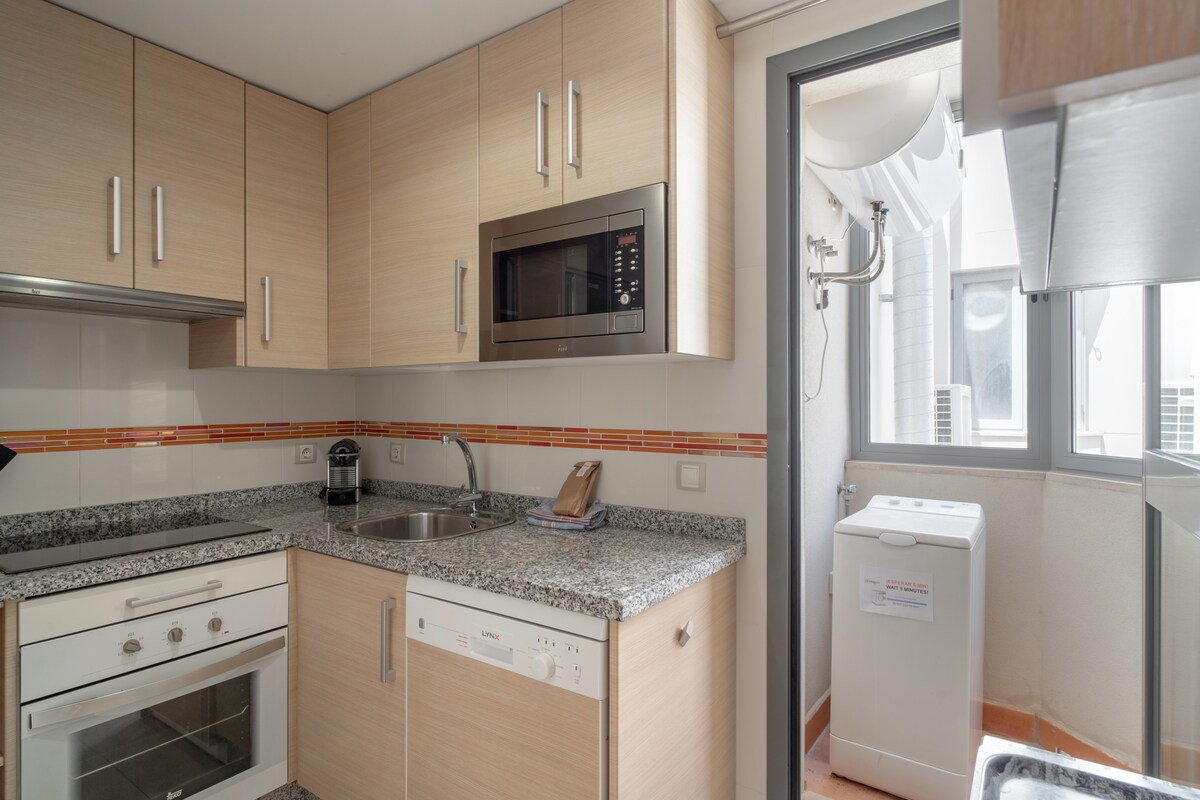 Penthouse Mirador 5b is a modern and stylish holiday flat located in an excellent area close to the beaches of La Torrecilla and Playa Chucho in Nerja. It is west of the Balcon de Europa, just a few minutes away. The location of the flat is perfect, with a variety of bars, supermarkets, shops and restaurants in the surrounding area, allowing you to enjoy all the amenities and dining options the area has to offer.The flat is located on the 5th floor of the Mirador de Nerja building and consists of a cosy living/dining room, a fully equipped kitchen and two bedrooms. The layout and interior design of the flat are comfortable and functional, providing a pleasant atmosphere for guests.
