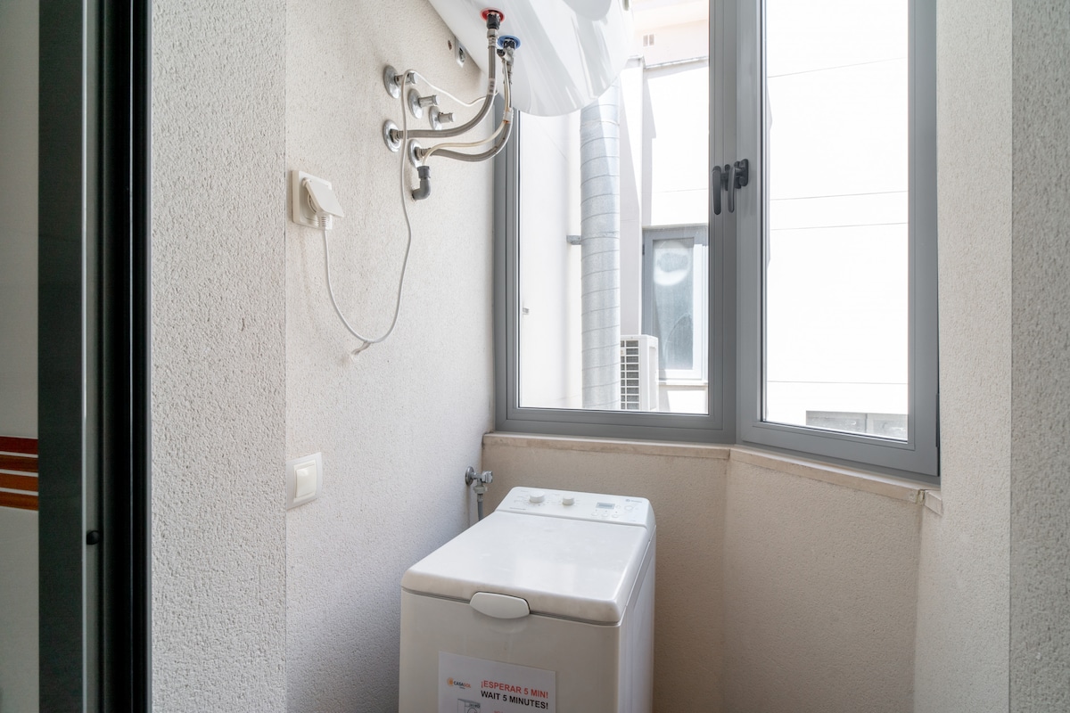 The flat is also equipped with air conditioning and heating in all rooms, ensuring a comfortable stay at any time of the year. In addition, guests are provided with high-speed internet access, allowing them to stay connected and enjoy digital entertainment during their stay.