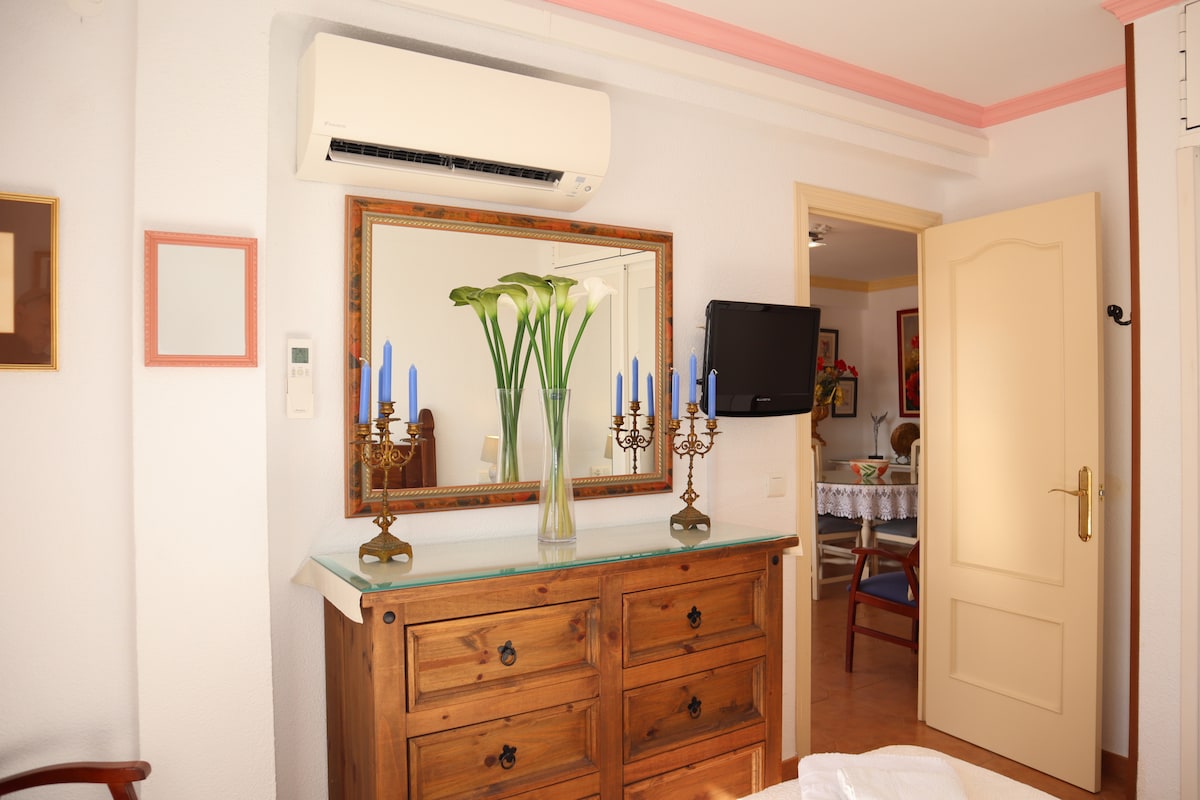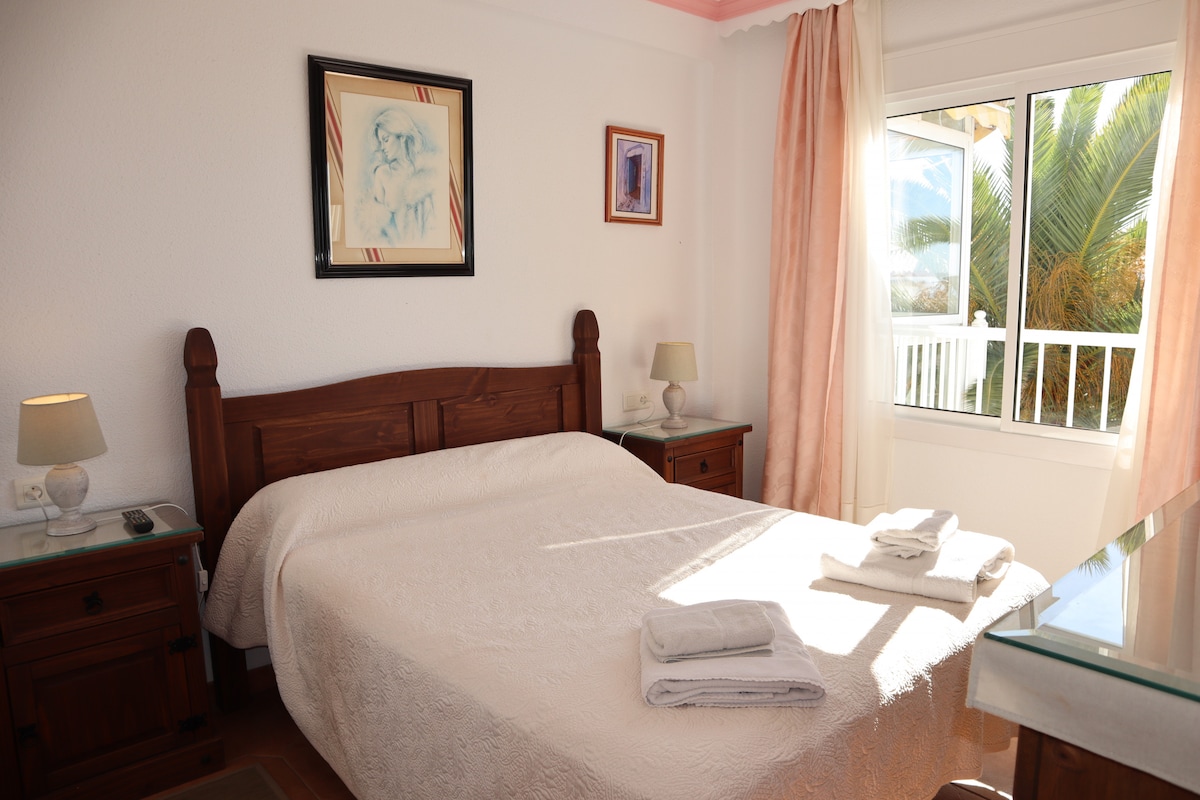 The apartment in Nerja has 2 bedrooms and capacity for 4 people.Accommodation of 65 m² nice and is ample, It has views of waterfront and the garden. The property is located 50 m supermarket "Coviran", 250 m sand beach "Carabeillo", 500 m city "Centro", 25 km golf course "Bavaria Golf", 65 km airport "Málaga" and it is located in a a family-friendly zone and close to a shopping area and restaurants. The accommodation is equipped with the following items: lift, washing machine, internet (Wi-Fi), hair dryer, balcony, air-conditioned, swimming pool communal+children's, TV. The independent kitchen, of gas, is equipped with refrigerator, microwave, oven, freezer, dishes/cutlery, kitchen utensils, coffee machine, toaster and kettle.