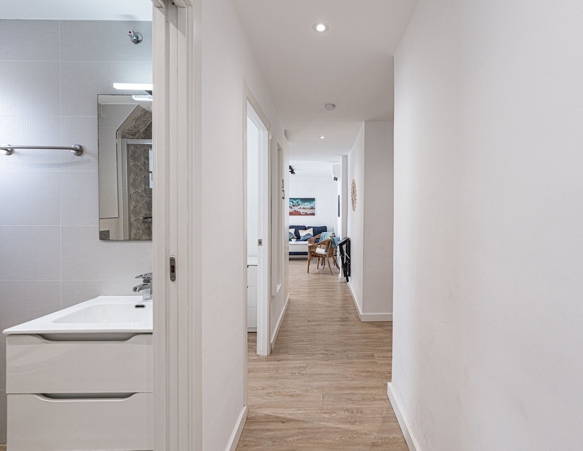 Welcome to Gaviota 3º3 Seaside Apartment, where modern comfort seamlessly blends with the serene ambiance of beachside living. Nestled just moments away from the pristine shores and the lively town, our apartments provide an idyllic retreat for couples and small groups of up to three people.Indulge in the contemporary elegance of our flat, which now features 2 bedrooms for even more comfort and versatility. The first bedroom features a spacious king-size bed with a high quality mattress to ensure a restful night's sleep, plus a balcony to enjoy the views and cool breeze. The second, smaller bedroom is equipped with a bunk bed, ideal for friends or the younger members of the family. With a maximum occupancy of 4 people, our flat is perfectly suited to small families or groups of friends looking to enjoy a comfortable and stylish stay.