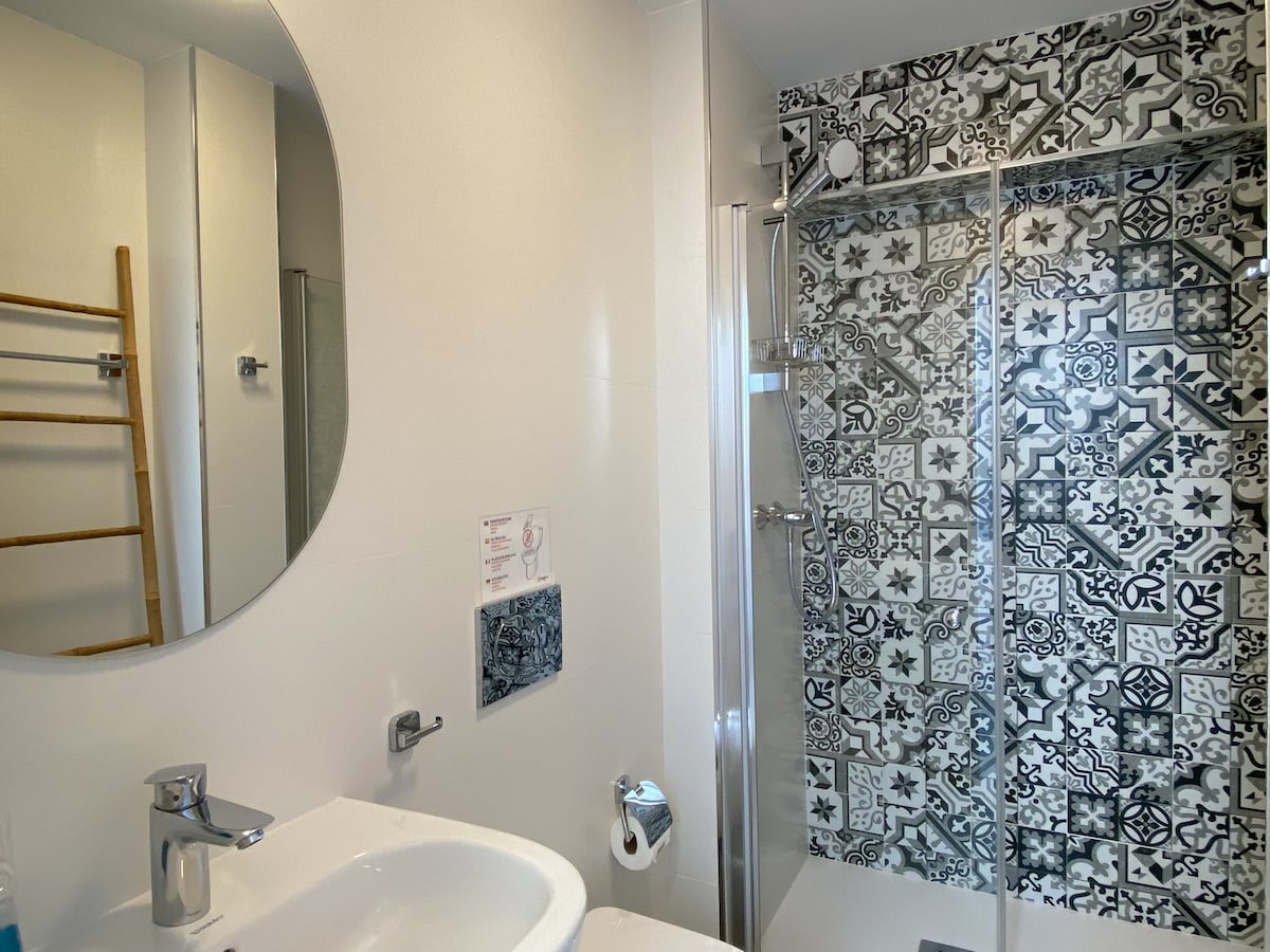 Everything is great and very new. Clean and very well-equipped. A great view, even if you're away from the beach. The only downsides are the situation and the garage. To get there, you have to go several minutes through narrow streets with a lot of unevenness. That's right, there's almost no traffic. And the entrance to the garage is little less than diabolical. I just put it in the first day. The rest of the time the car stays in the street. Despite this, it is highly recommended.