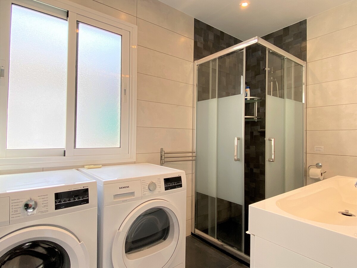 The second bedroom has two 90-bed top mattresses, the beds can be furnished either as single beds or as a double bed, as desired. In addition, there are two newly fitted bathrooms with shower. The larger bathroom has a double sink and washing machine as well as a tumble dryer. There are also an iron and ironing board and hair dryer.