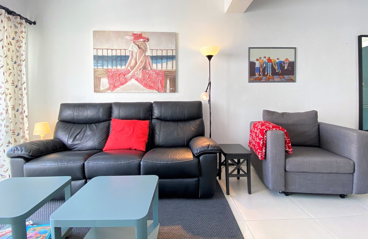 The spacious living room is bright with sofa and 49 'flat screen Tv with more than 190 International Channels and a High-Speed Fiber Internet.