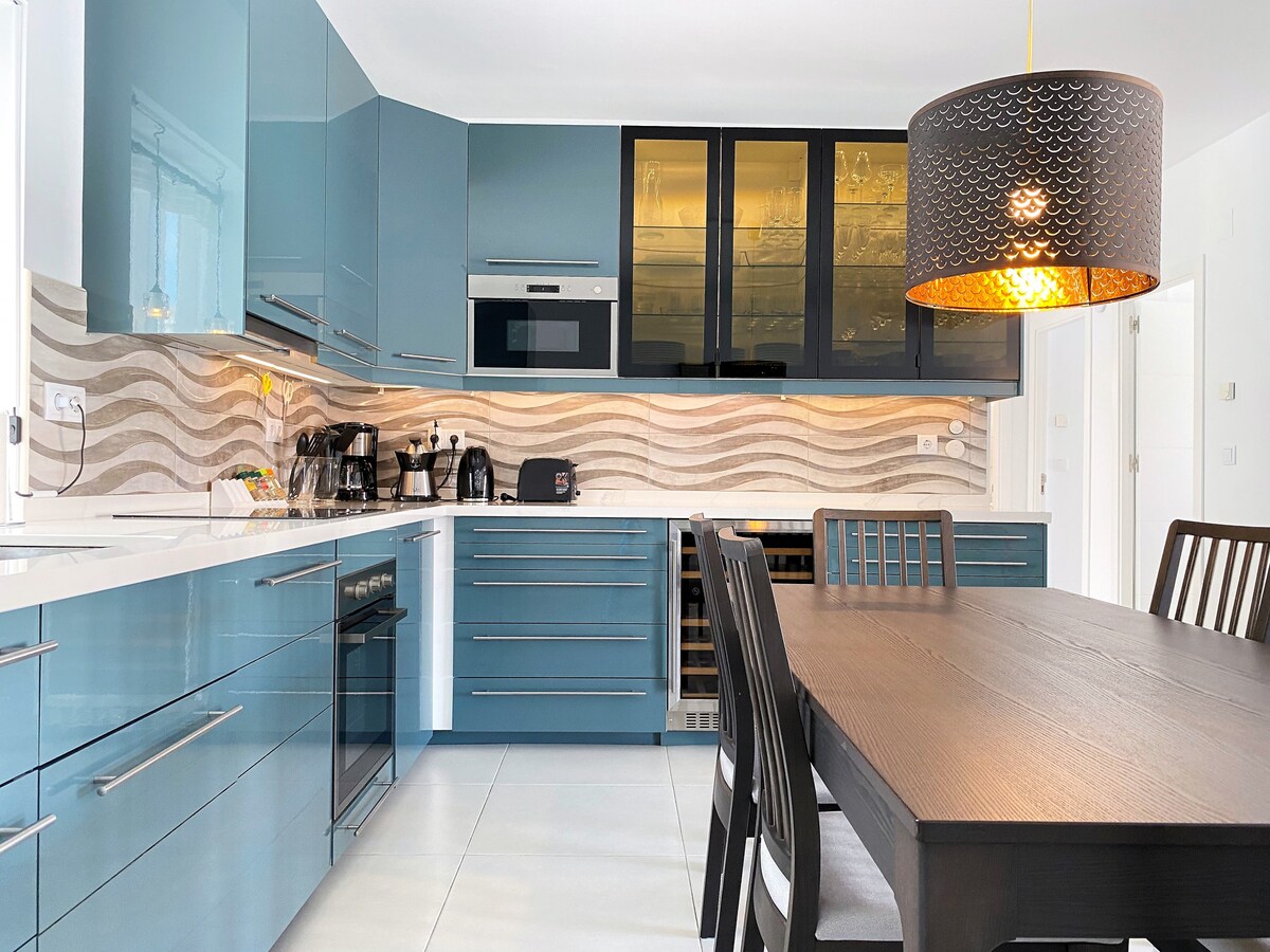 The fully equipped brand-new kitchen has everything you might need to make the most of your vacation, such as induction hob, oven, microwave, dishwasher and a wine cabinet