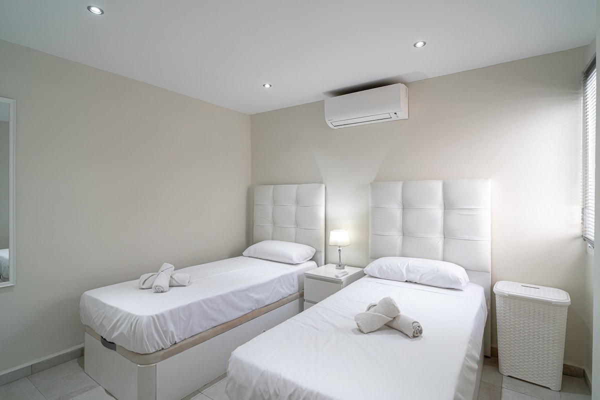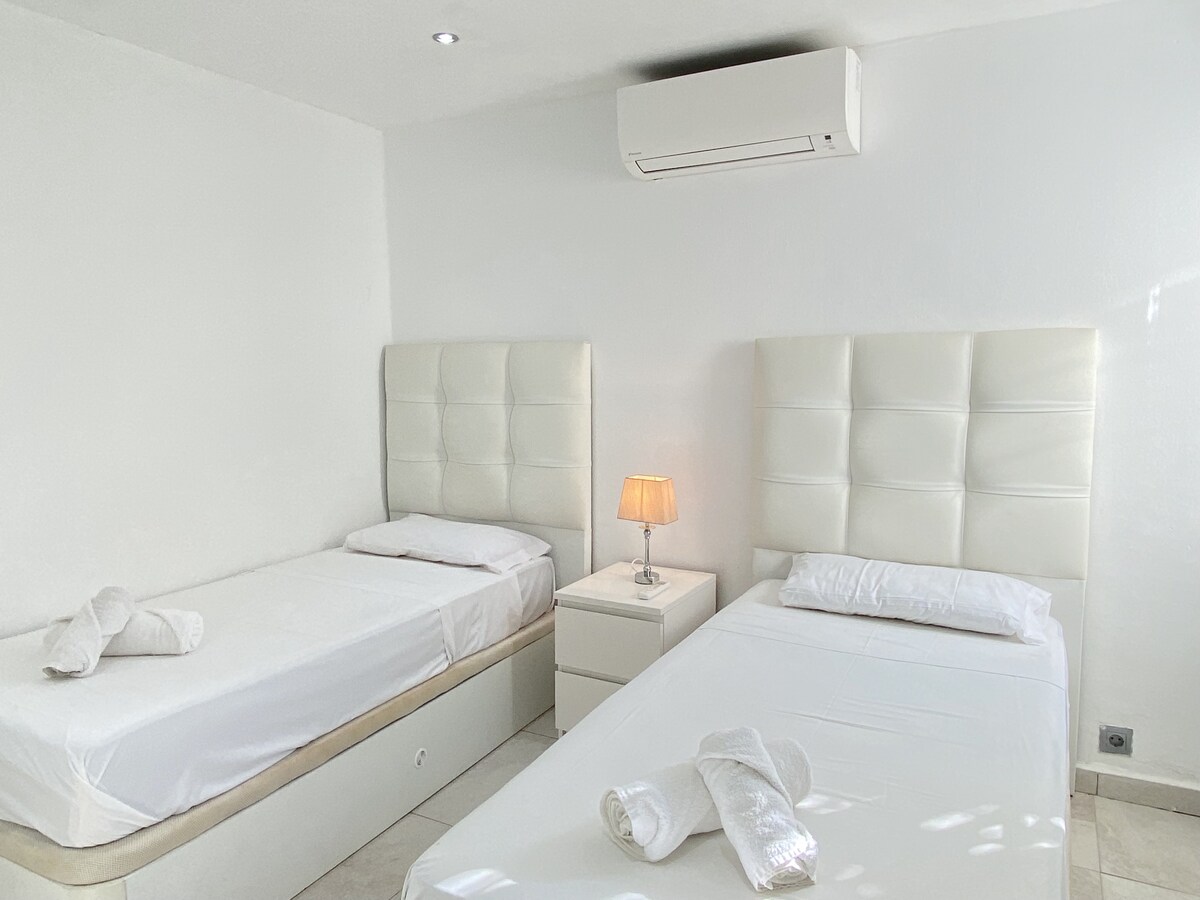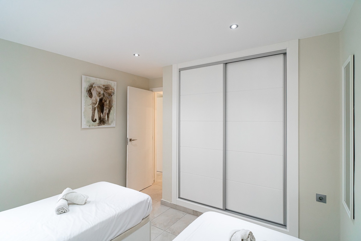 Lovely apartment, great location for the communal pool. Lots of the apartments in the area have lots of stairs or up a big hills this one does not. Bedrooms were nice and beds were comfortable. However the main bedroom (double) does not have a mirror, which would be a welcome addition. Tv is a smart tv so can watch Netflix etc. We will likely book this apartment again next year.