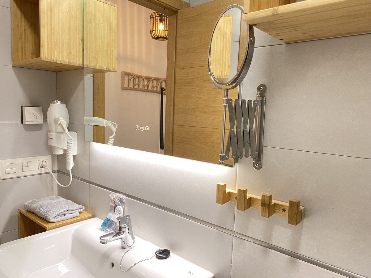The ground floor consists of a bedroom with a double bed, a spacious living room with television with international channels and high-speed Internet. In addition, a fully equipped kitchen with the latest appliances.