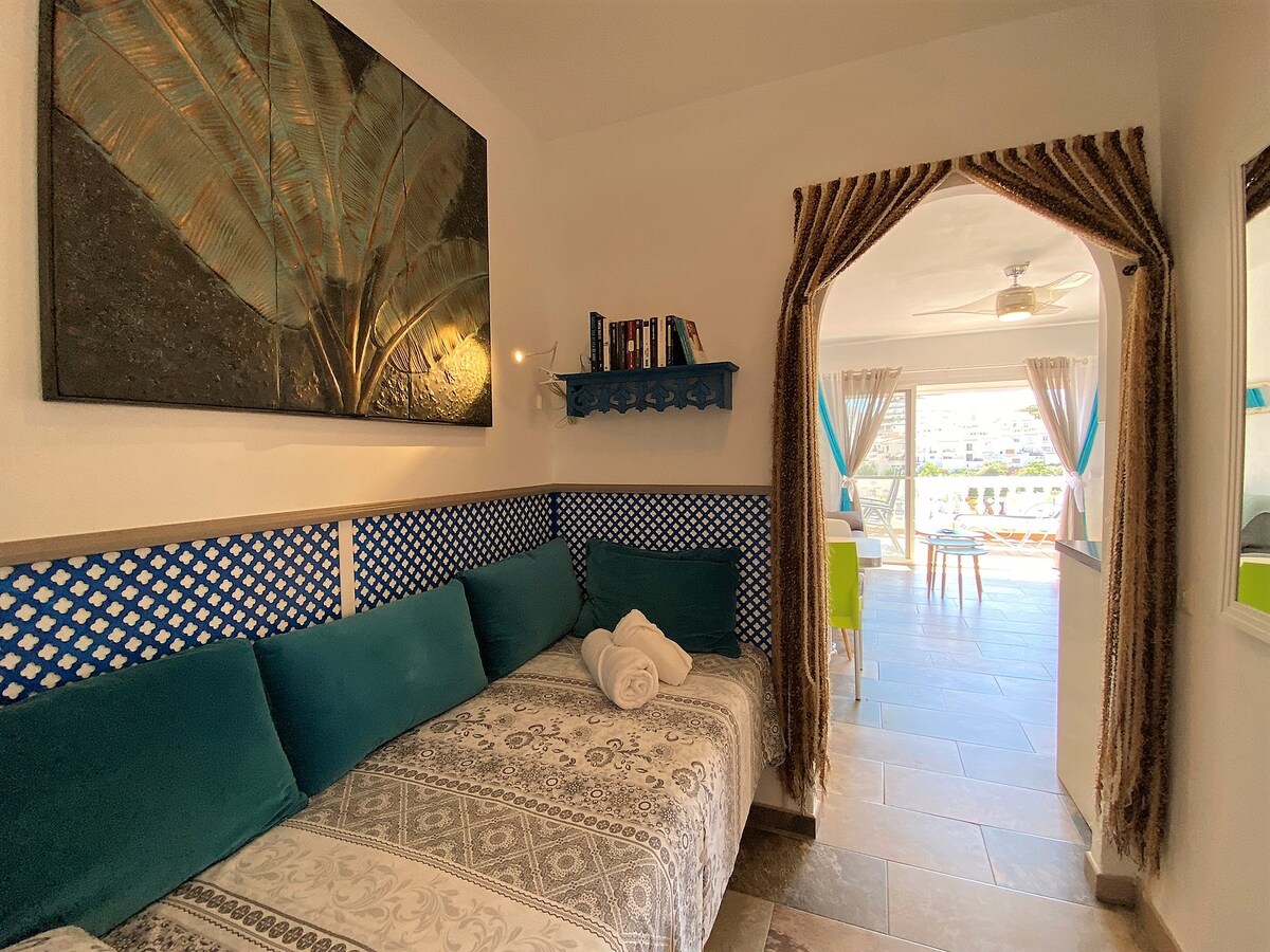 With a large double bed in one room and a separate single bed off the main lounge, it is the perfect combination for 2/3 people. The relaxing sunny terrace provides views down to the beach, up to the mountains and across to the town.