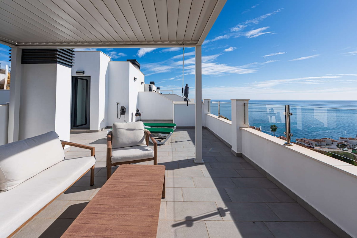 Discover the ultimate luxury in this stunning duplex with breathtaking views of the sea and mountains! Located in the heart of the eastern coast of Malaga between Nerja and Torrox in the sought-after Terrazas de Ladera complex, exemplifies elegance and comfort.
