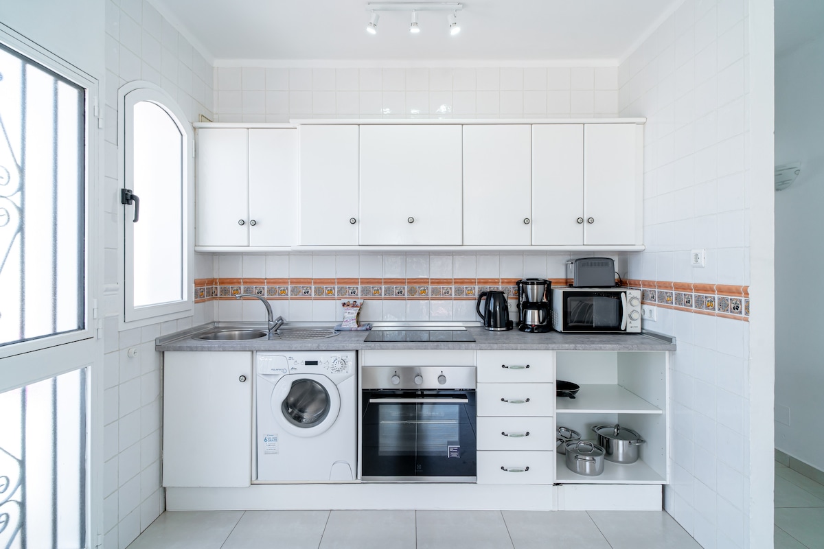 Just 50 metres from the apartment, a plethora of facilities awaits you, such as a supermarket, several bars and restaurants, a spacious communal swimming pool with dedicated children's area, and stunning views of the sea and mountains. Don't forget to visit our famous chef Sergio Paloma's Rooftop Bar Kanema, located nearby, for an unforgettable experience.