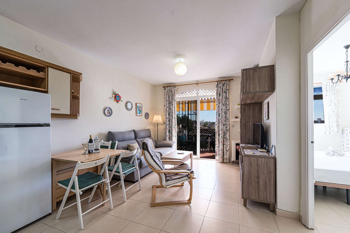 The apartment is very good for 2 people. Overlooking the sea and quiet area. The urbanization is very nice and with a pool, in general very pleasant and a very good experience :) The apartment is close to the center as well, you can walk and there are many supermarkets nearby. I would go back!