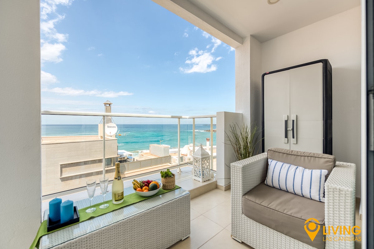 LIVING LAS CANTERAS HOMES was friendly and responsive. Excellent taxi transfer. Juan arranged the late check-out and taxi to the airport for us. Thanks again for that. But the apartment didn't meet my expectations, because a beautiful sea view isn't everything. The apartment is basically nice and well located. However, there is only a thin curtain in the living room, which means that the room quickly heats up in the sunshine. In addition, the curtain in the bedroom could be cleaned once. The balcony lacks an awning or comparable sun protection, making it nearly impossible to sit comfortably on sunny afternoons until sunset. In addition, the water boiler is quite small at only 15 litres, which means that longer showers are not possible. The apartment is in a slightly worn-out condition. The bathroom is small and the shower is not very inviting. With a few improvements, the apartment could gain in living comfort.