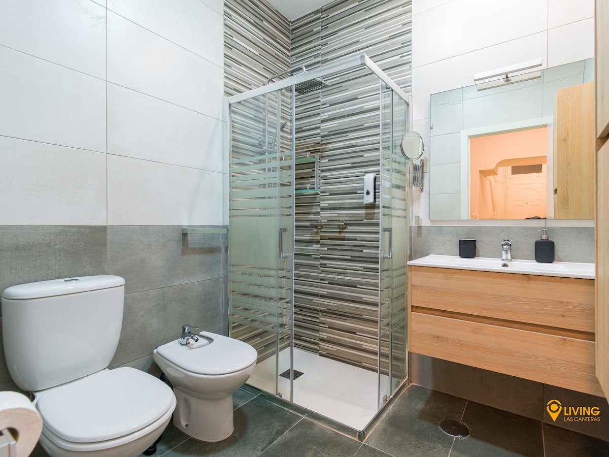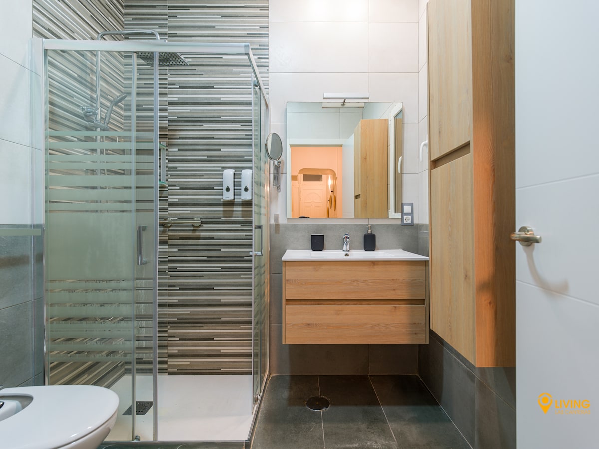 ★ Very modern BATHROOM, with a lot of storage space. The WALK-IN SHOWER, with FANTASTIC WATER PRESSURE, has shampoo and gel dispensers. And for your comfort, we include 2 sets of towels per guest.