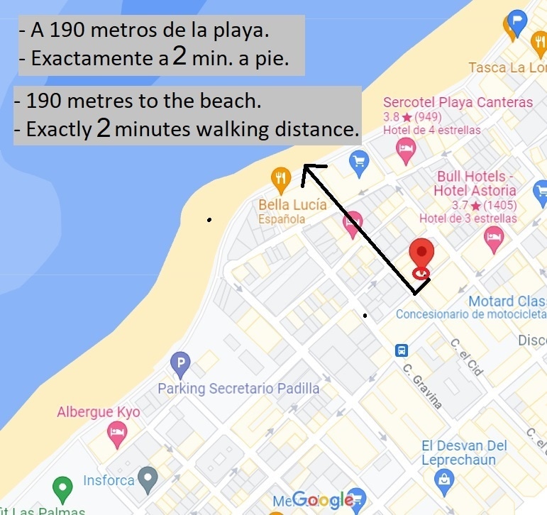 ★ TWO BEDROOM FLAT on a VERY QUIET street with hardly any traffic and a 2-MINUTE WALK from Las Canteras Beach.