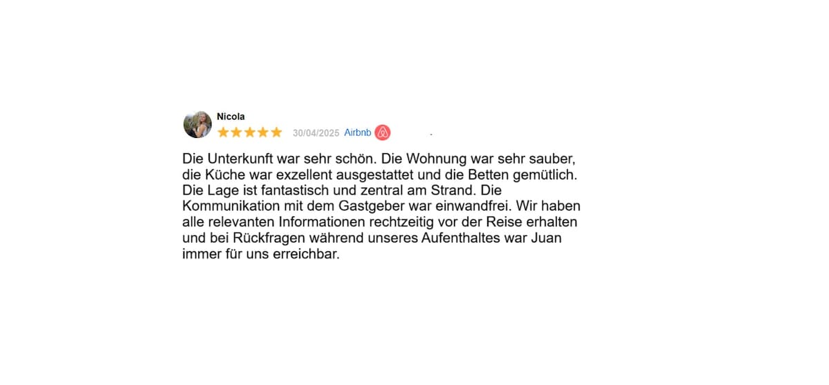 The Living las Canteras team accepted a very spontaneous booking and responded very quickly and gave us all the necessary information. The self check-in was super easy, everything was explained exactly. The apartment itself was very clean and super equipped. There was a separate room with a washing machine, where you could also find parasols and chairs for the beach, as well as other accessories. The location is great and the balcony offers a view of the entire beach. Our stay was perfectly rounded off as the team allowed us to check out later. We will be back!