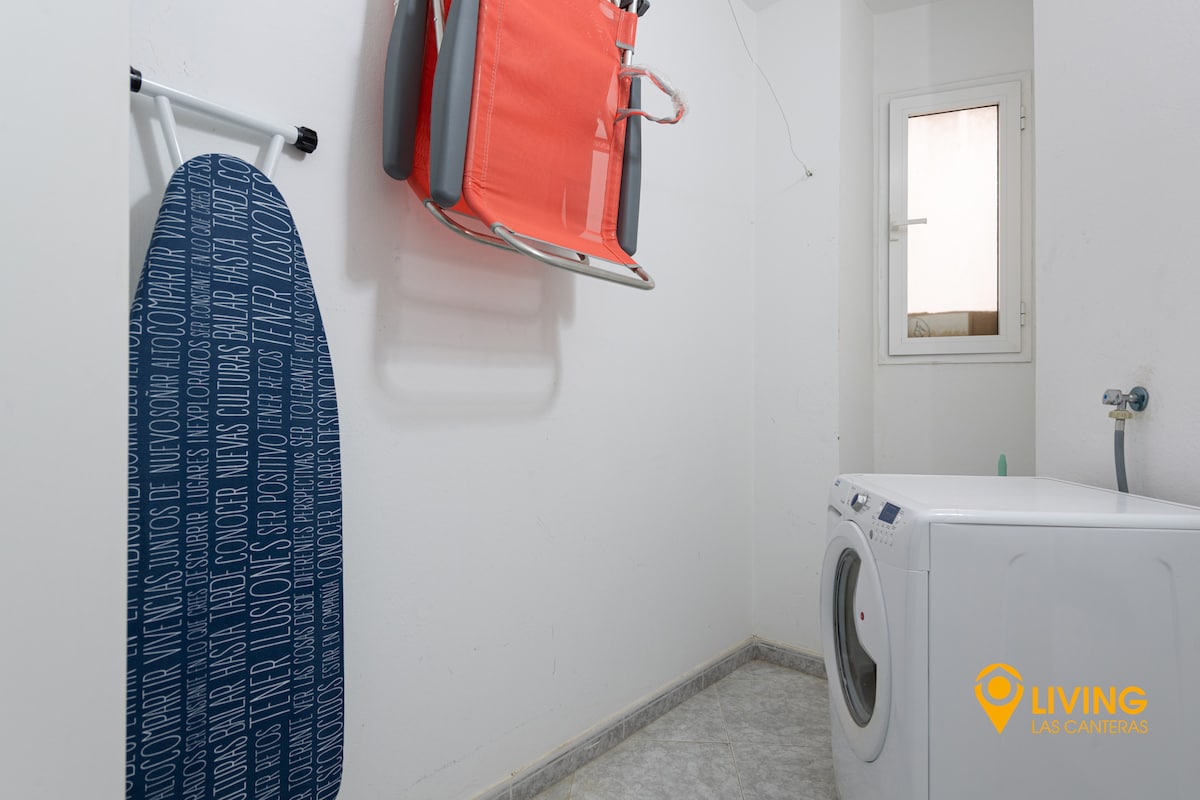 ★ As in all LIVING LAS CANTERAS HOMES properties, the KITCHEN is thoughtfully equipped to make cooking and dining at home as comfortable as possible. The washing machine is in the laundry room.★ The living room has a 40'' Smart TV with access to Amazon Prime (no access to German TV channels), as well as one couch and one reading chair, both new and amazingly comfortable.