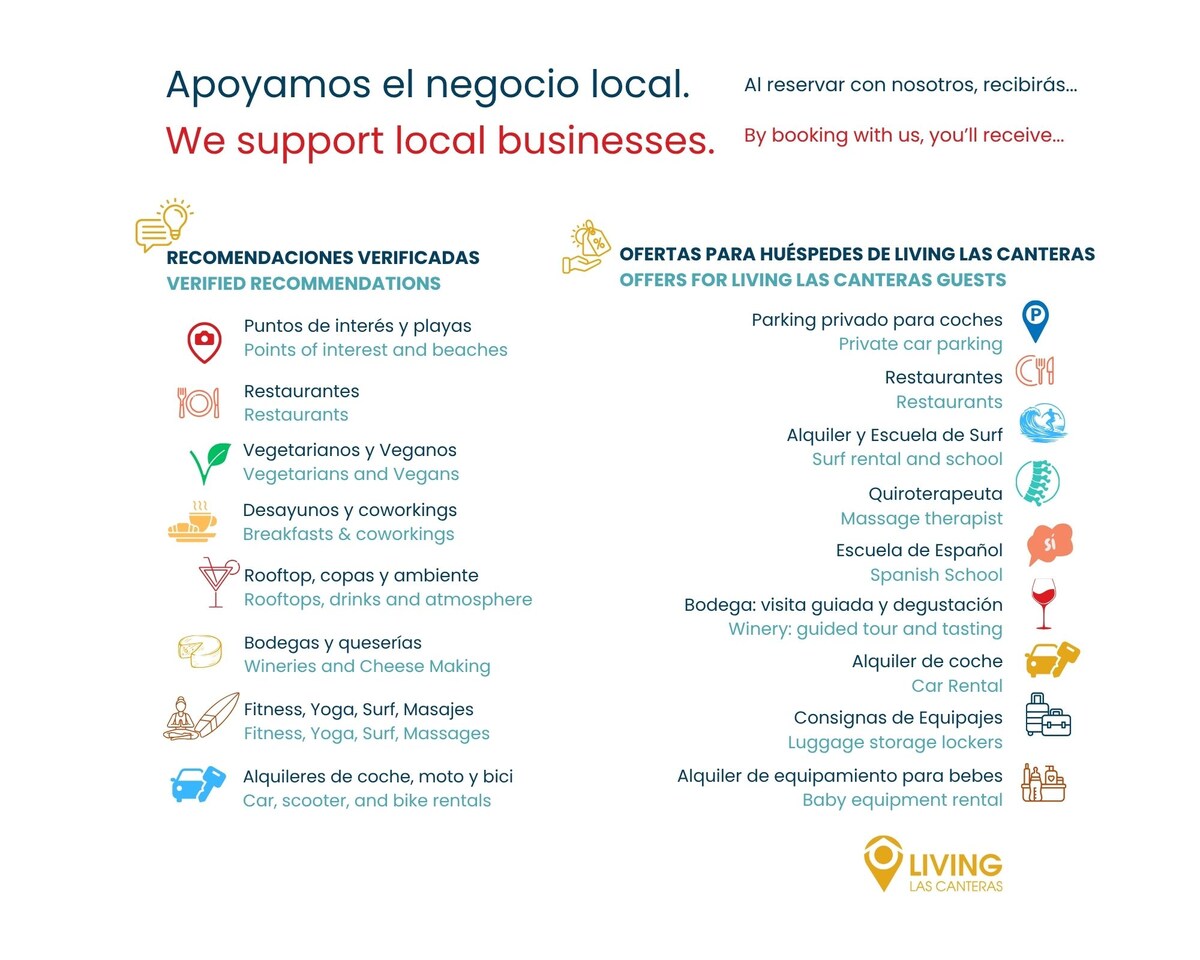★ HOUSE RULES At LIVING LAS CANTERAS HOMES, good relations with the neighbors are a top priority. The building where this accommodation is located is a residential property. For the sustainability of holiday rentals in residential buildings, we kindly ask for your full cooperation in adhering to the following rules: • The regulations of Las Palmas City Council state that noise perceived by a neighbour BETWEEN 10 p.m. AND 8 a.m. must not exceed 25 dB IN BEDROOMS and 30 dB IN OTHER ROOMS. Normal conversation = 40–50 dB. Slamming doors, dragging furniture = 70 dB. From these levels, you should subtract what is absorbed by walls, ceilings and windows. • Without our prior authorisation, access is not permitted to PERSONS WHO ARE NOT LISTED IN THE BOOKING. • SMOKING is strictly FORBIDDEN throughout the property and in all communal areas of the building. • We accept no responsibility for noise caused by NEIGHBOURS’ BUILDING WORKS that have not been notified to us. • PETS are not allowed. • Access to the building is not permitted WHEN WET OR WITH SAND from the beach. • It is not permitted to HANG CLOTHES on balconies or windows where they are visible from the street. • We do not provide a LINEN AND TOWEL CHANGE SERVICE. However, you will find spare sheets and towels in the apartment. The accommodation has a washing machine, and we provide detergent for your use. The flat has been decorated, furnished and cleaned so that you can enjoy it to its fullest. We kindly ask you to treat it with care and respect, so that future guests can enjoy it in the same way. Thank you very much!