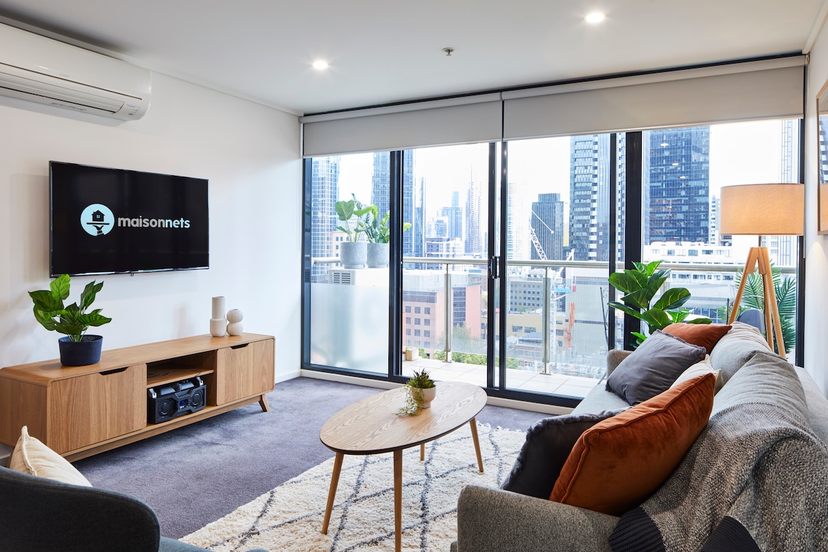 Maisonnets invites you to discover the perfect Melbourne getaway at this stylish two-bedroom apartment in the CBD. Enjoy city living from the 15th floor, relax on your private balcony, and take advantage of the building's gym and pool. With easy access to trams, Southern Cross Station, and top attractions like Marvel Stadium and Crown Casino, you'll have everything you need for an enjoyable stay.