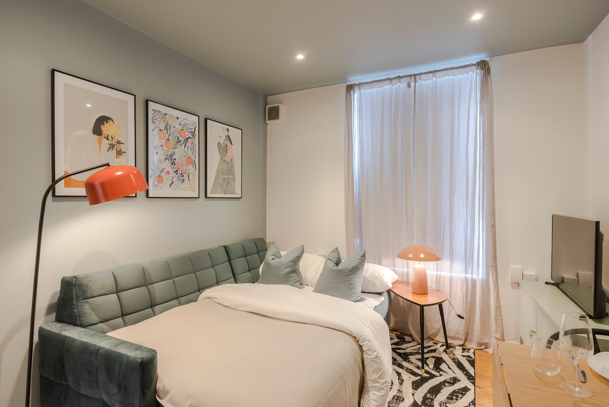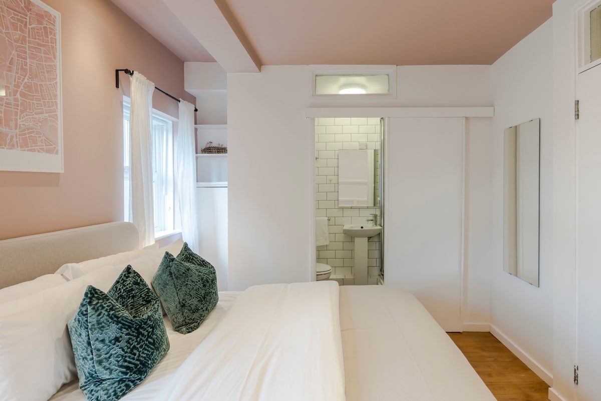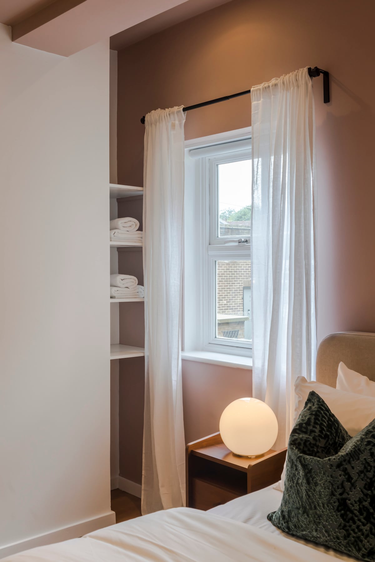 The bedroom offers a restful haven with a plush uk king-sized bed and ample storage space for your belongings. You'll wake up refreshed and ready to explore all that London has to offer.