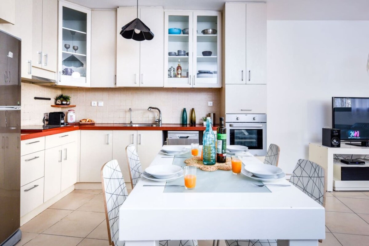 HOUSE RULES: • No smoking • No pets allowed (subject to approval) • No parties allowed • Crib/extra folding bed - available upon request only • Turn off lights and ac/heating when out • Respect neighbors by keeping noise reasonable In accordance with Israeli law, we require a copy of your government issued photo id before arrival. By booking this apartment, you agree to pay an additional 18% VAT, applicable to Israeli citizens as required by law. This amount will be collected via an Airbnb VAT payment request sent to you through the platform. Foreigners receive B2 slip at passport control at the airport to avoid VAT. Check-in instructions provided after B2 slip or VAT payment.