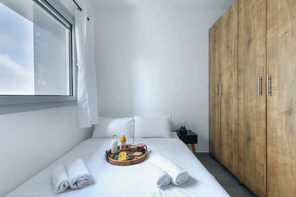 The apartment includes a Mamad (reinforced safe room) for your safety and peace of mind.