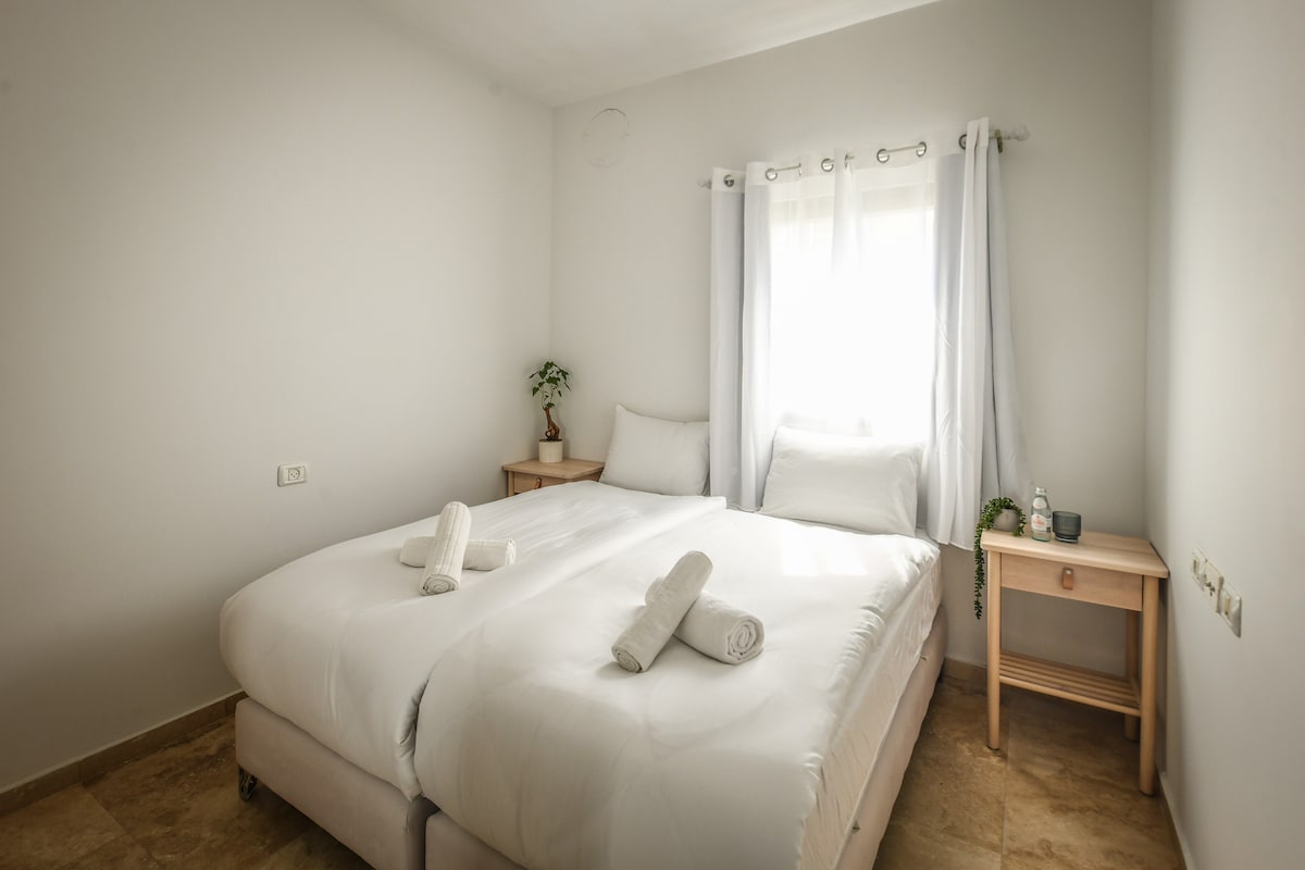 The apartment includes a Mamad (reinforced safe room) for your safety and peace of mind