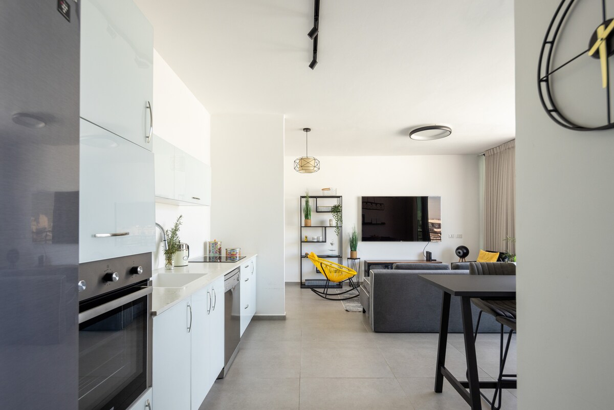 The apartment includes a Mamad (reinforced safe room) for your safety and peace of mind