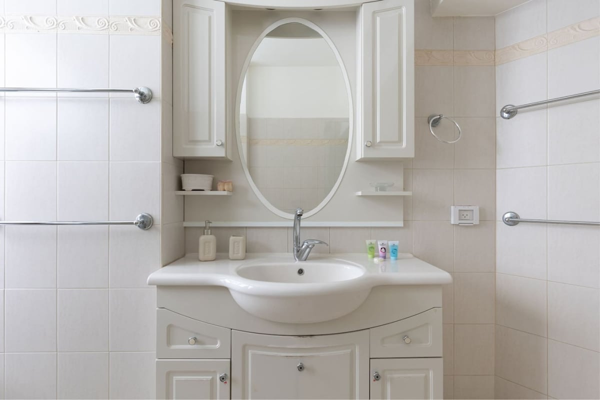 The apartment has three bedrooms, each designed to provide restful sleep. The master bedroom includes a double bed and ample storage. A second bedroom offers twin beds, perfect for kids or friends, while the third bedroom provides additional flexibility with a comfortable single bed and workspace, ideal for those working remotely.