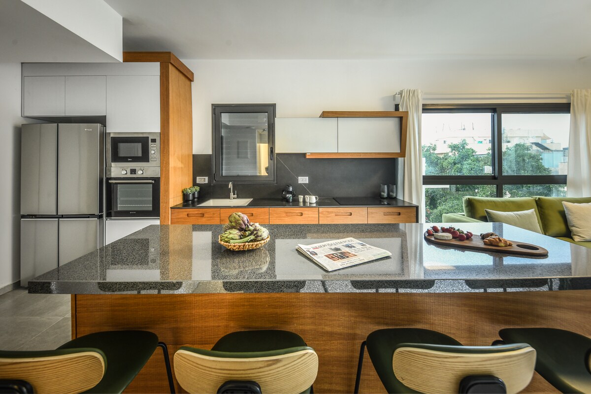 The apartment includes a Mamad (reinforced safe room) for your safety and peace of mind