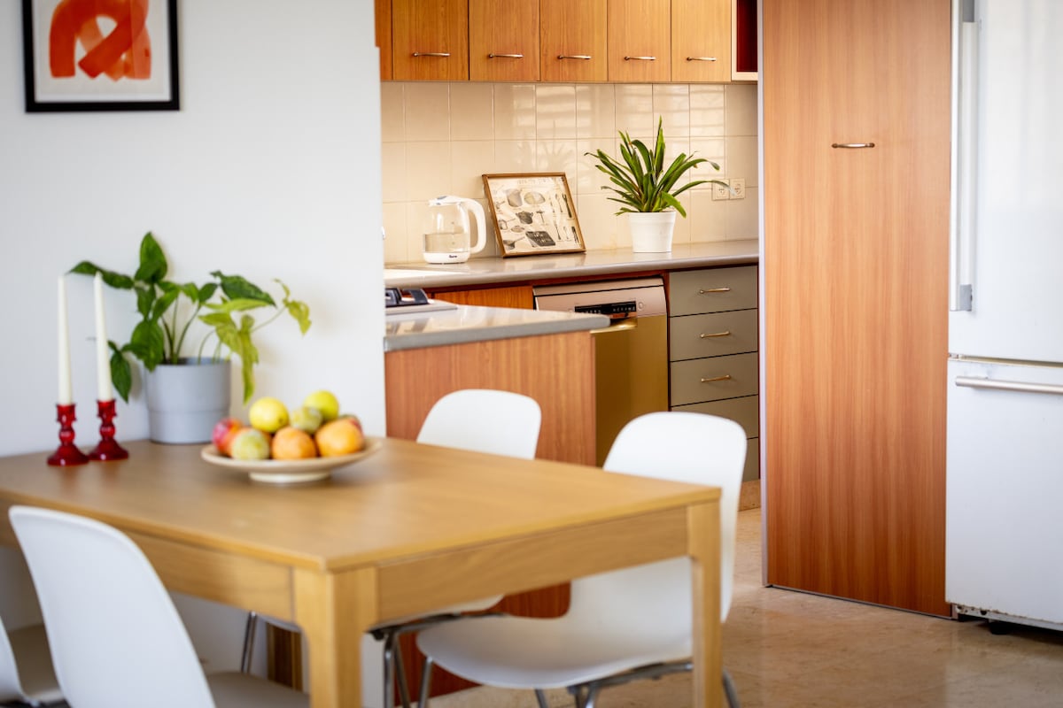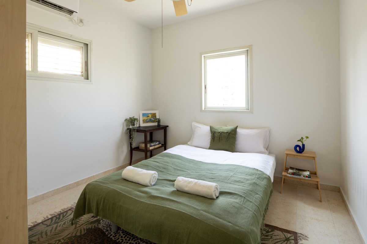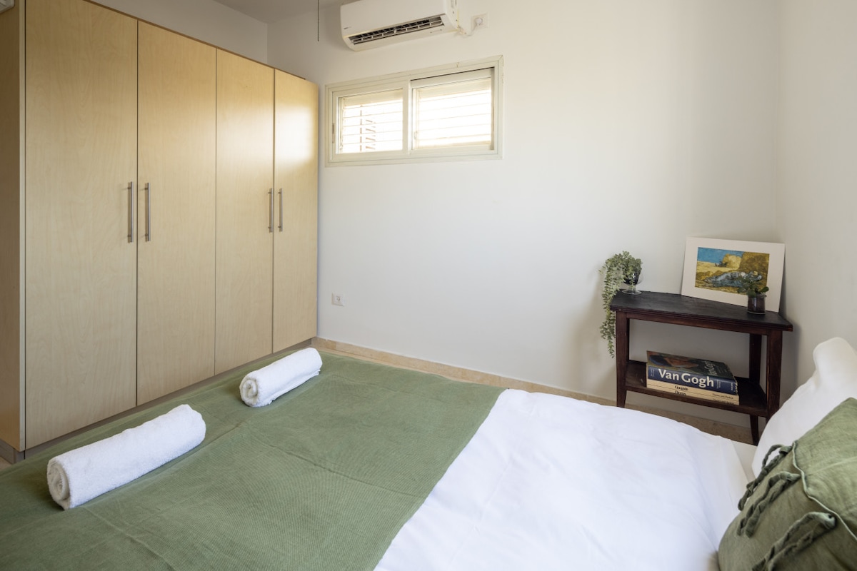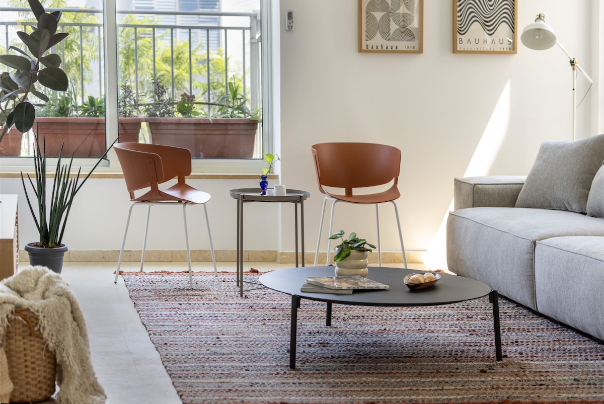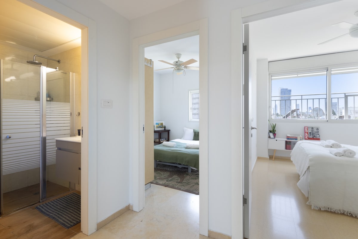 This fifth-floor apartment (with elevator access) is surrounded by lush green trees and charming small parks where you can enjoy a peaceful coffee break. Just a three-minute walk takes you to the famous Ben Gurion Street, and within 10 minutes, you can reach the vibrant Dizengoff Street. Hilton Beach is a leisurely 15-minute walk away, offering you the best of Tel Aviv's attractions within easy reach.
