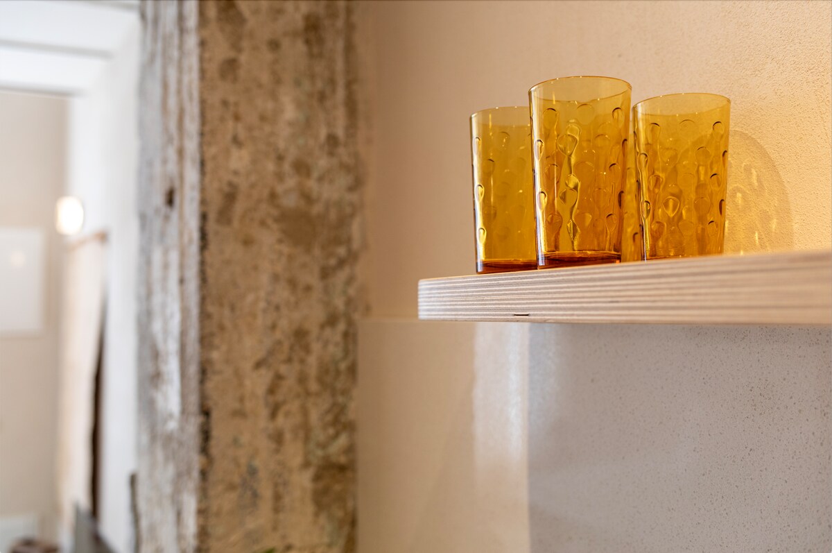 On this quiet street is an apartment that stands out. Inside you will find a stunning apartment. The kitchen has modern equipment with vintage charm and brings together the aesthetic of the space.