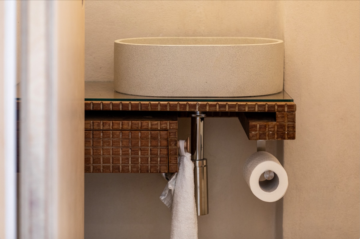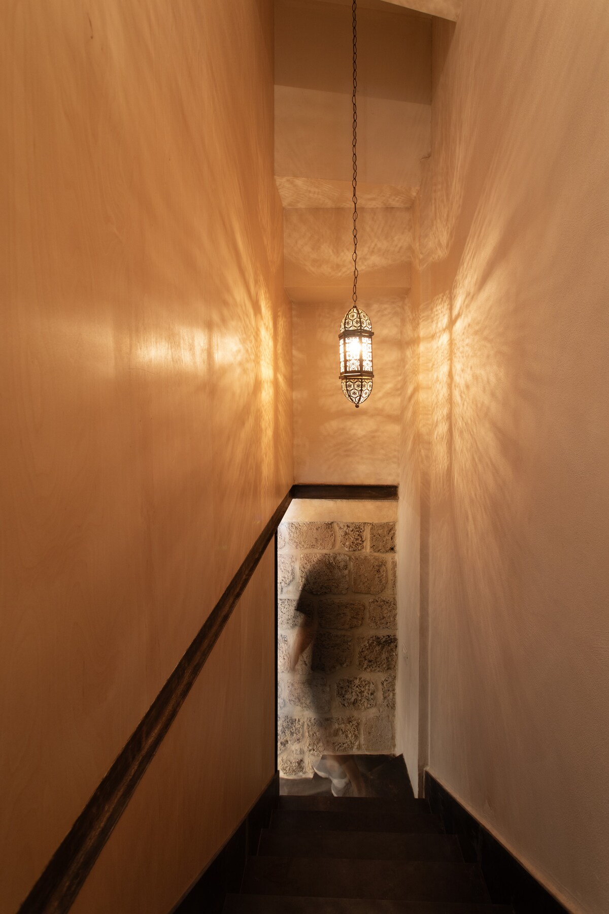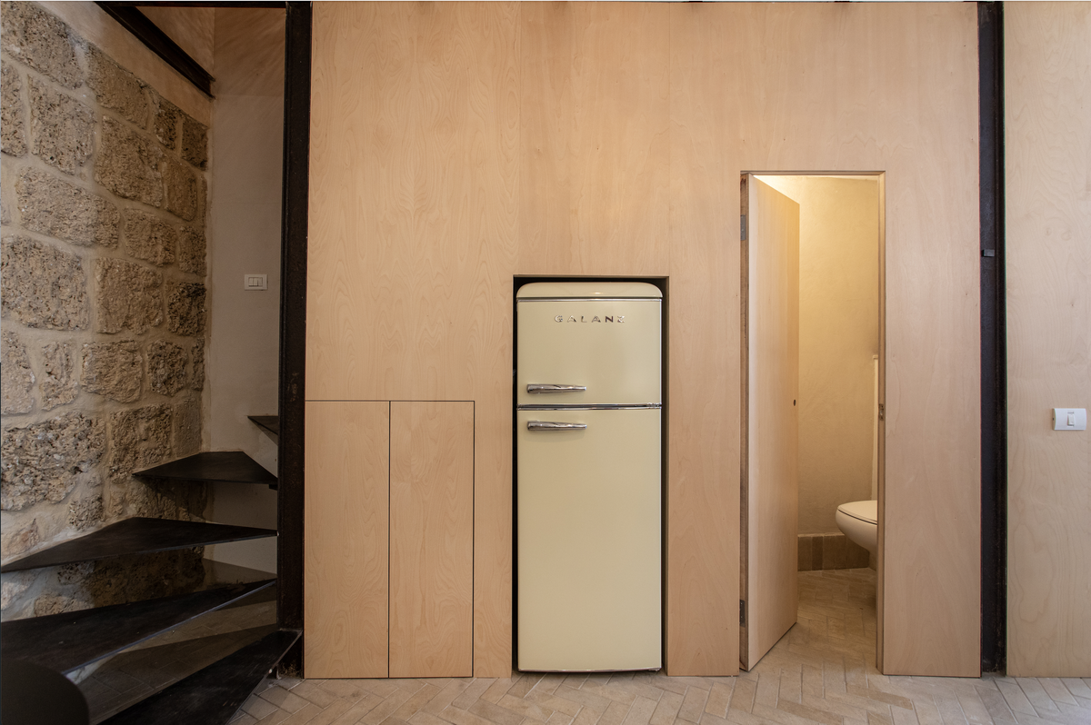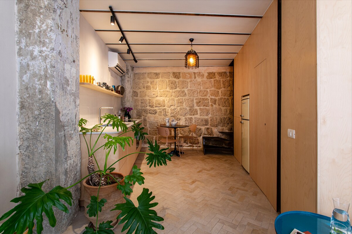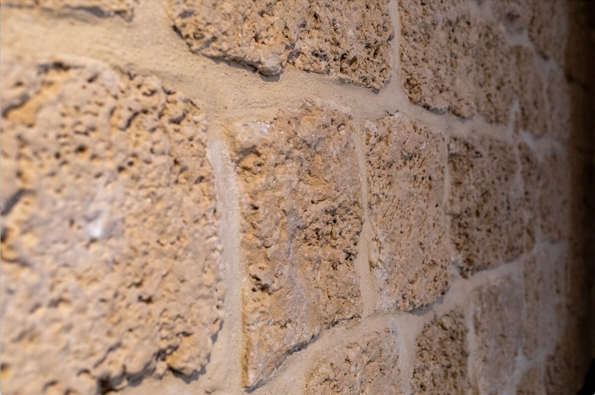 The design will wow and delight you with it's stone wall, hidden bathroom, and washing machine. To help escape the hustle and bustle of Jaffa you can enjoy the 34-inch smart TV with Netflix. Lay down and unwind after a day of exploration.Climb the stairs in this apartment and you will notice that even the stairway is beautifully designed with cool stones and beautiful lighting.